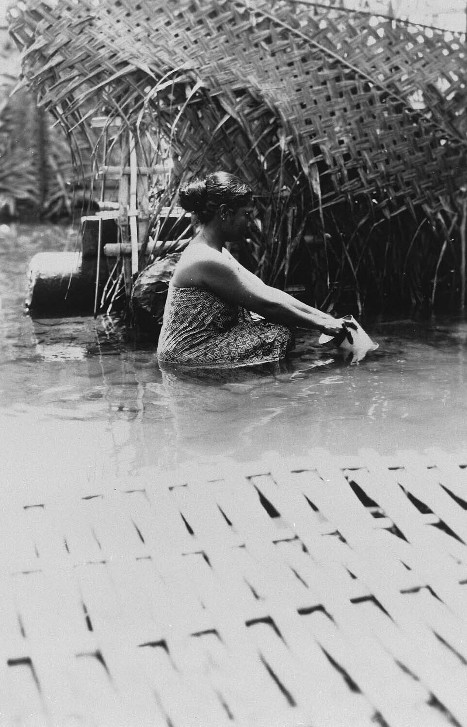 Een Javaanse vrouw baadt in een geneeskrachtige heil...