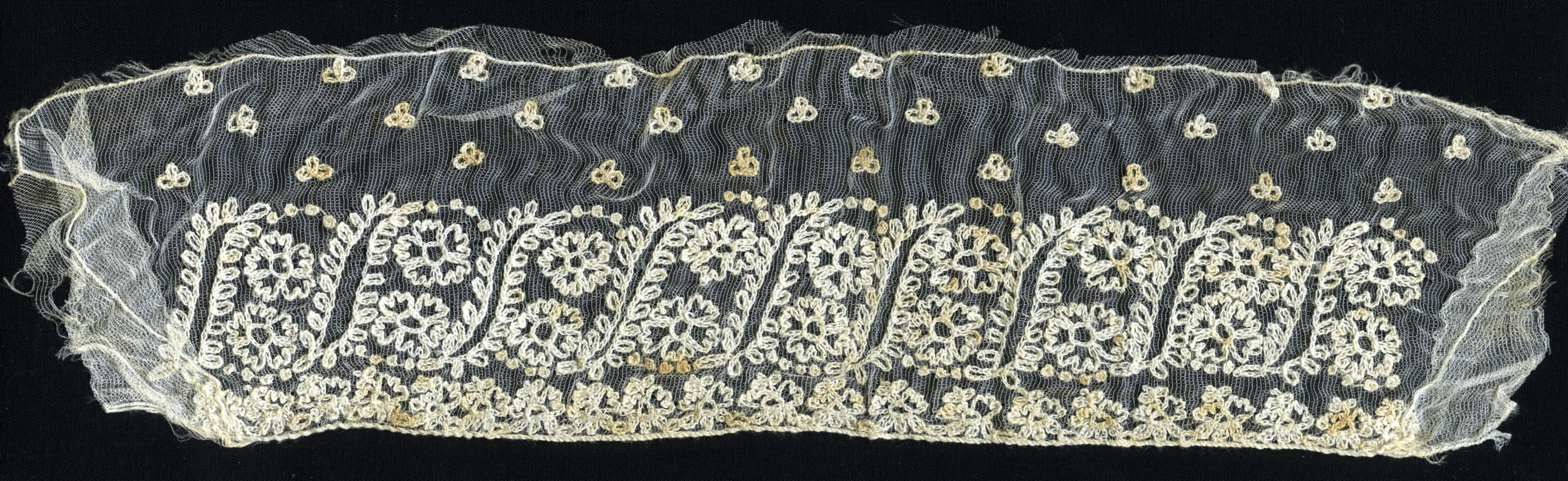 Fragment kantstrook van floddermuts, Friesland (staa...