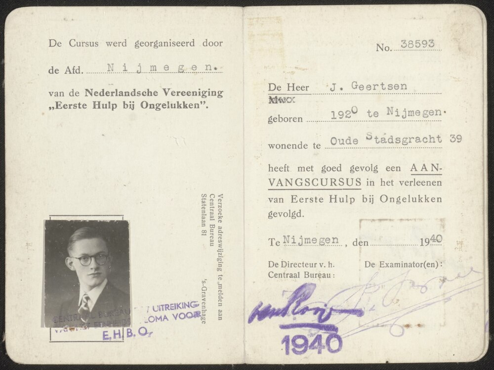 Eenheidsdiploma Eerste Hulp bij ongelukken op naam v...