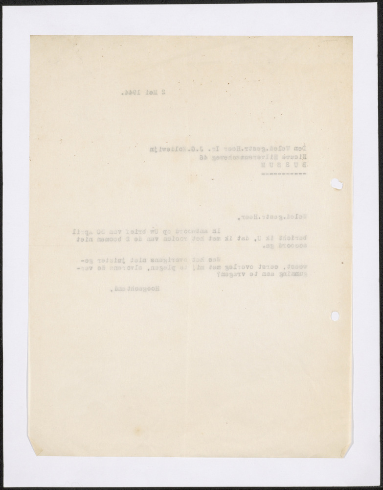 Brief aan Weled. Gestr. Heer Ir J.G. Koldewijn