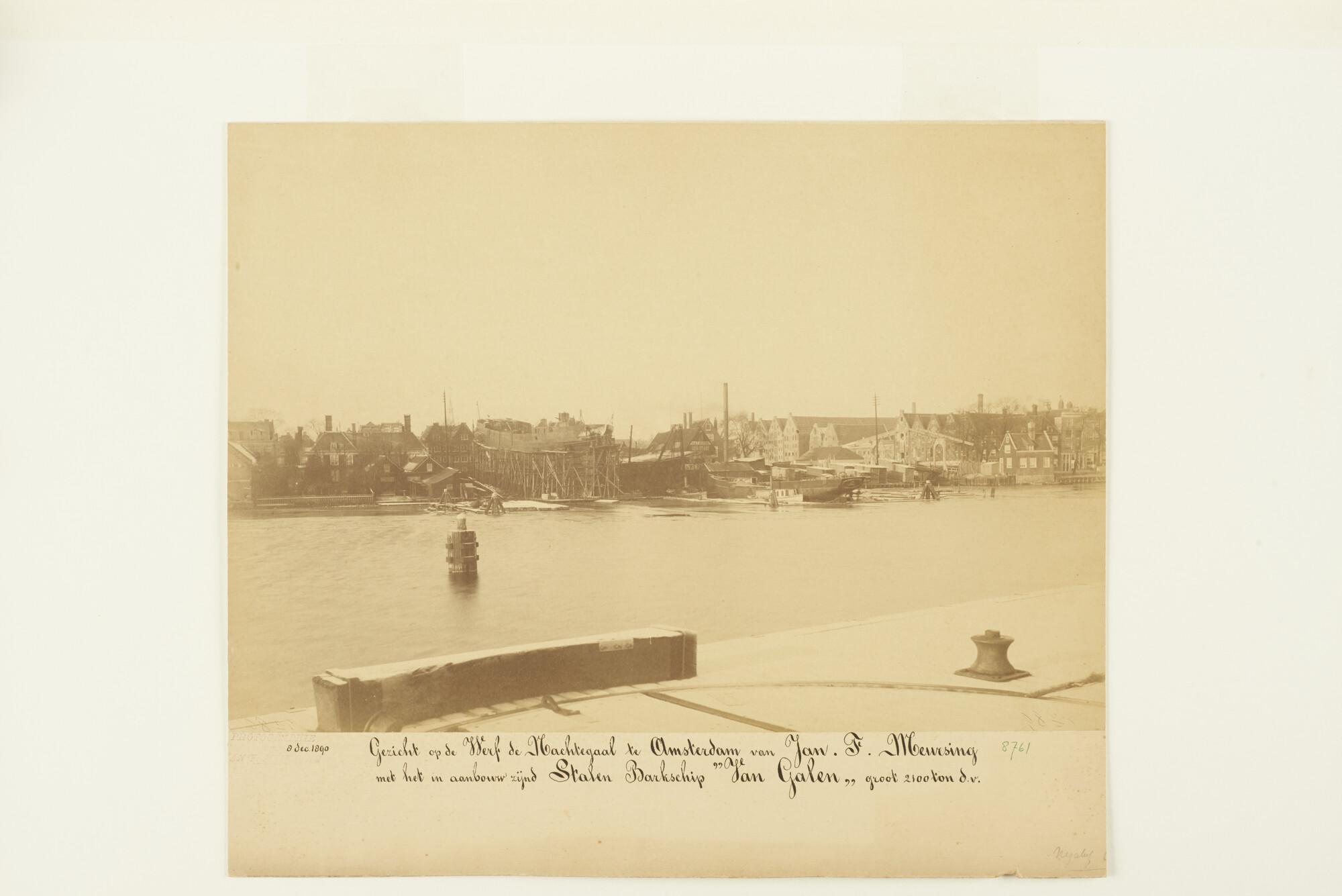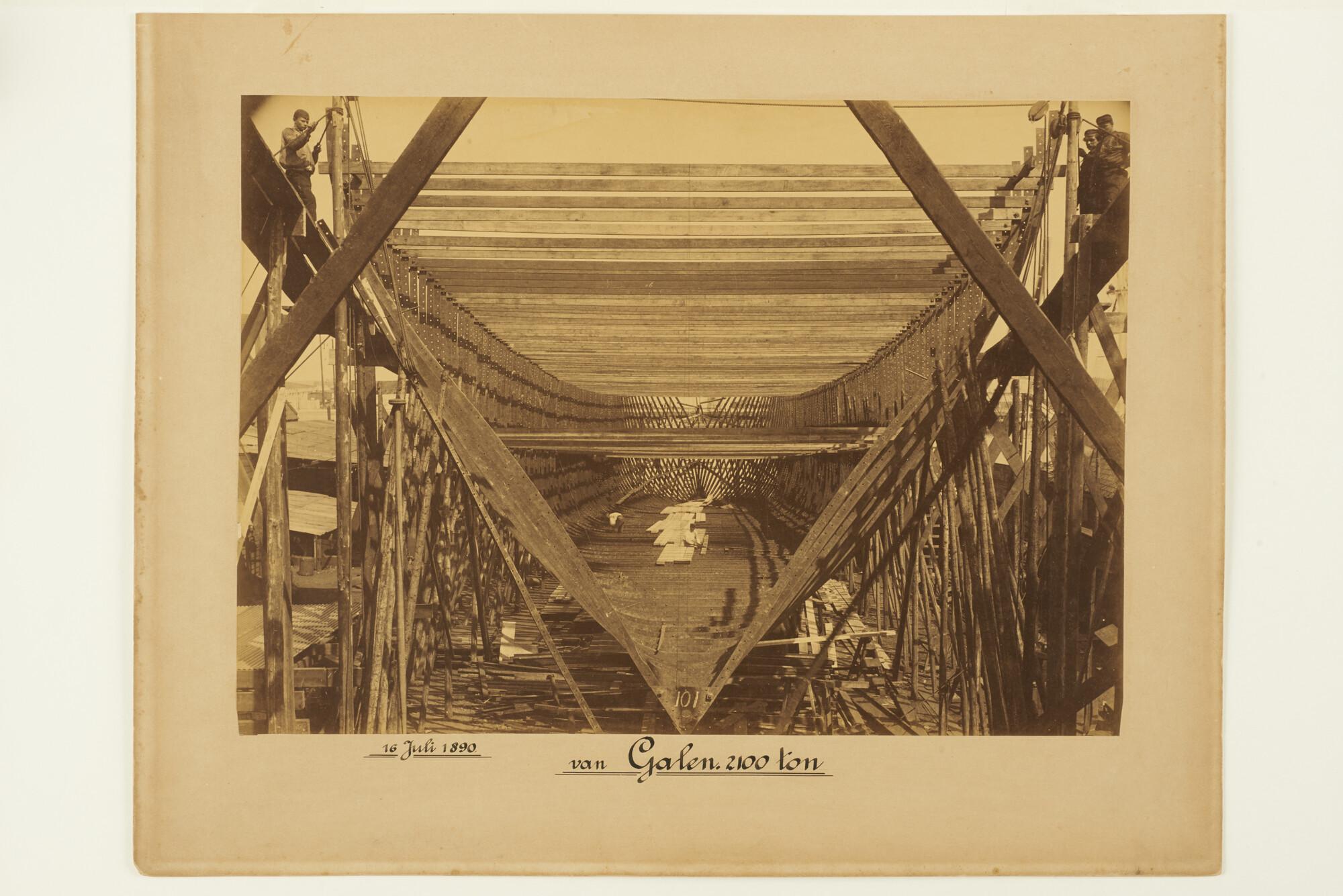 Het stalen barkschip Van Galen in aanbouw op de werf...