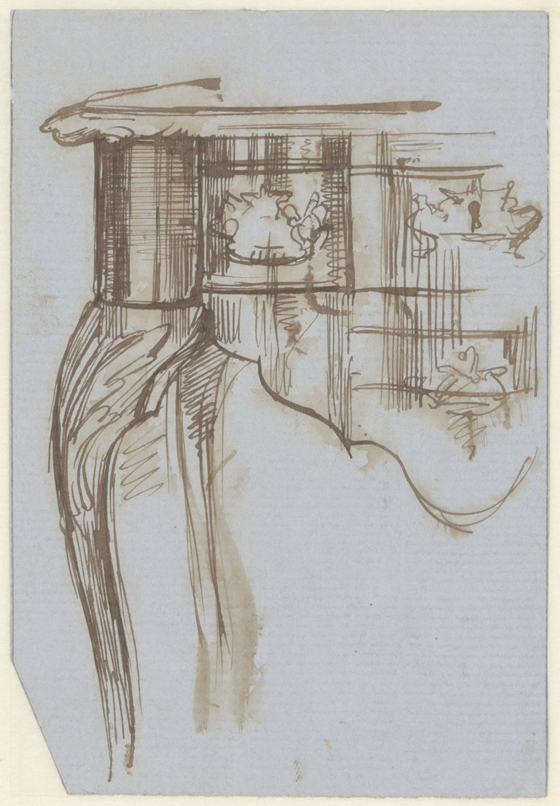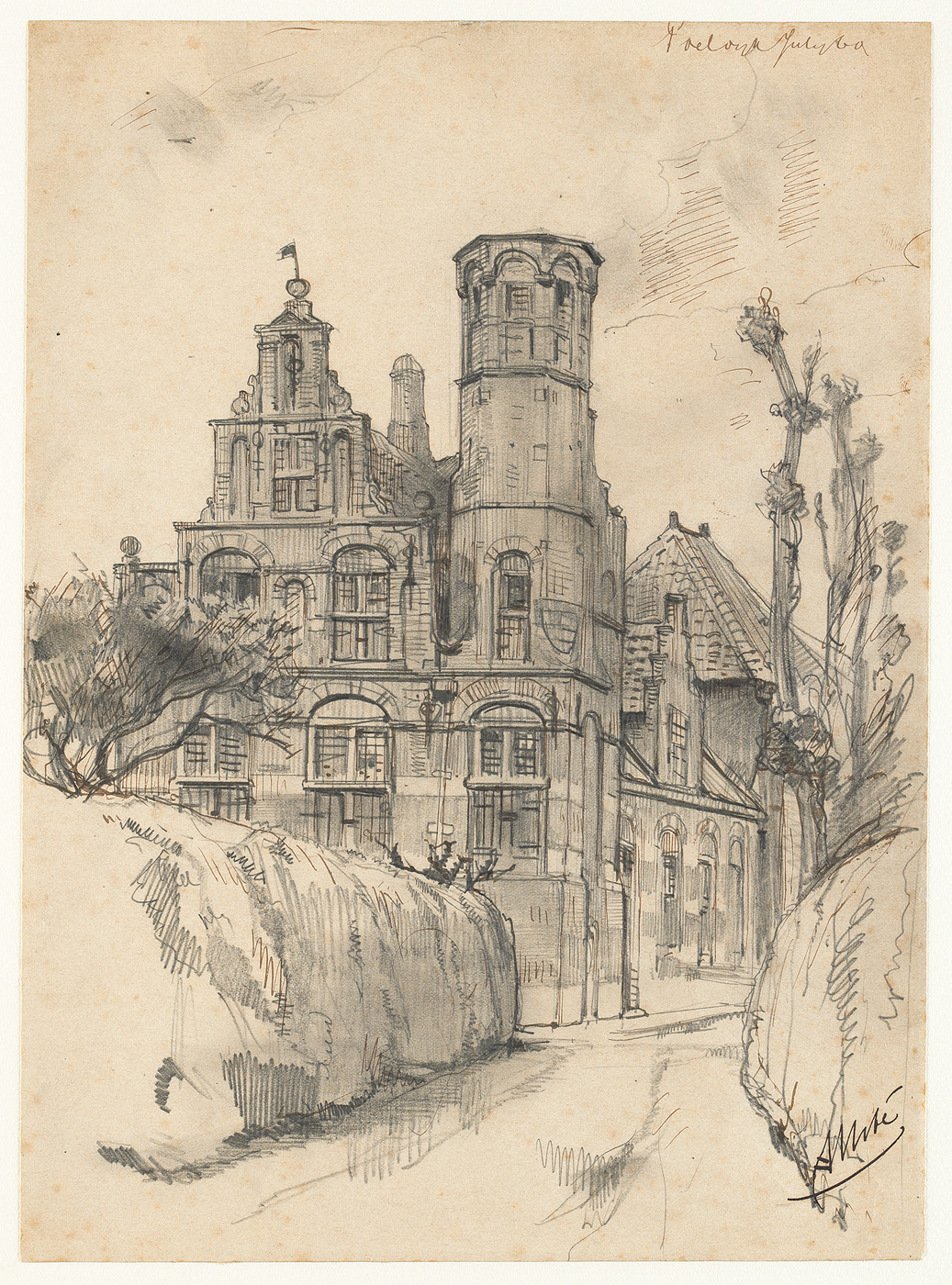 In het kasteel "Poeldijk". Een figuur in 18e eeuwsch...