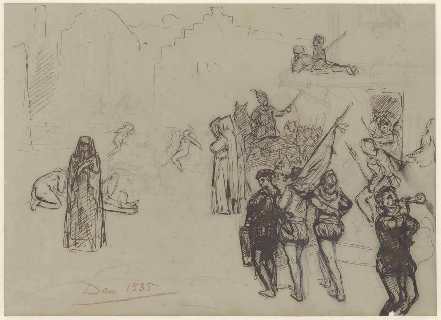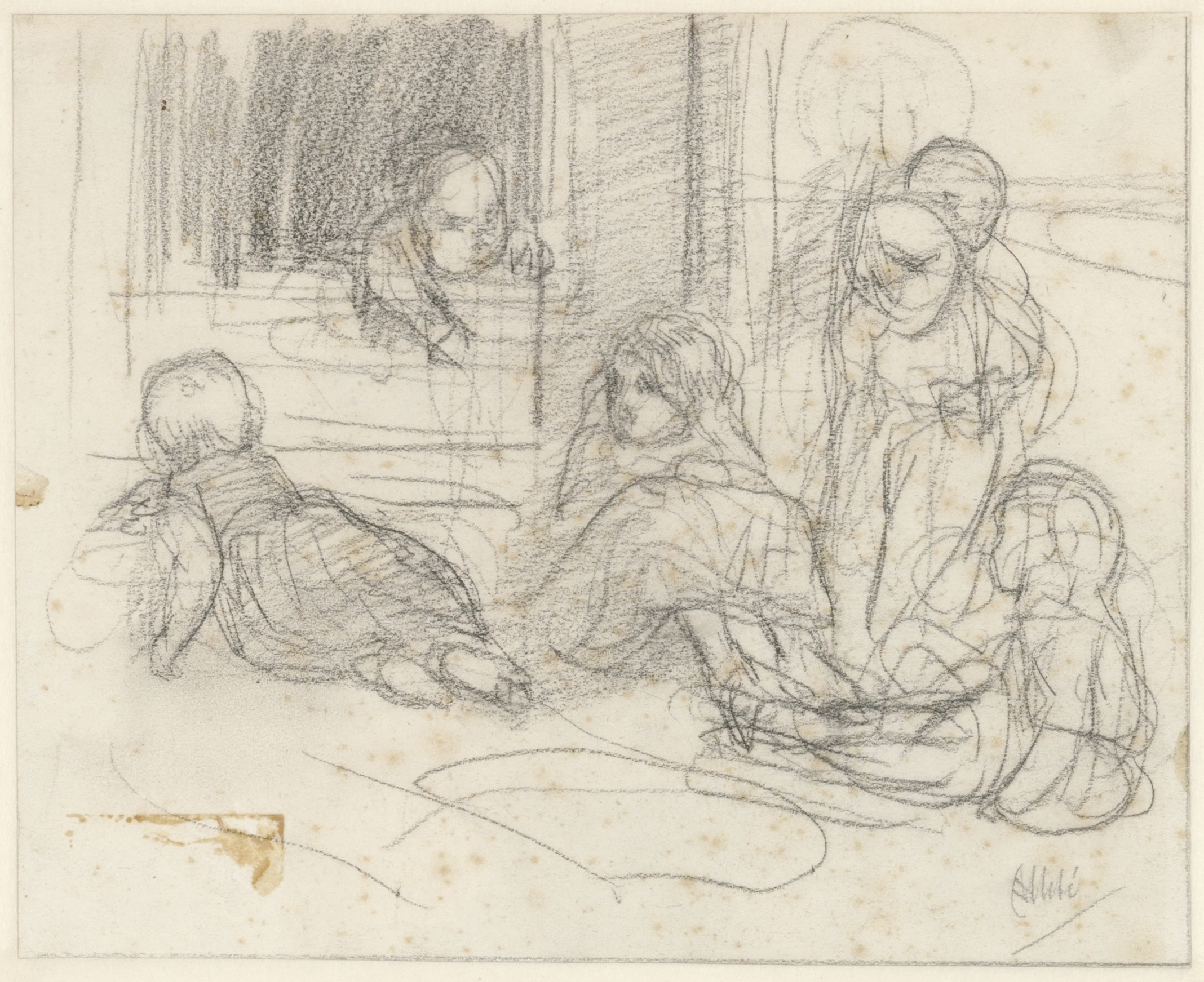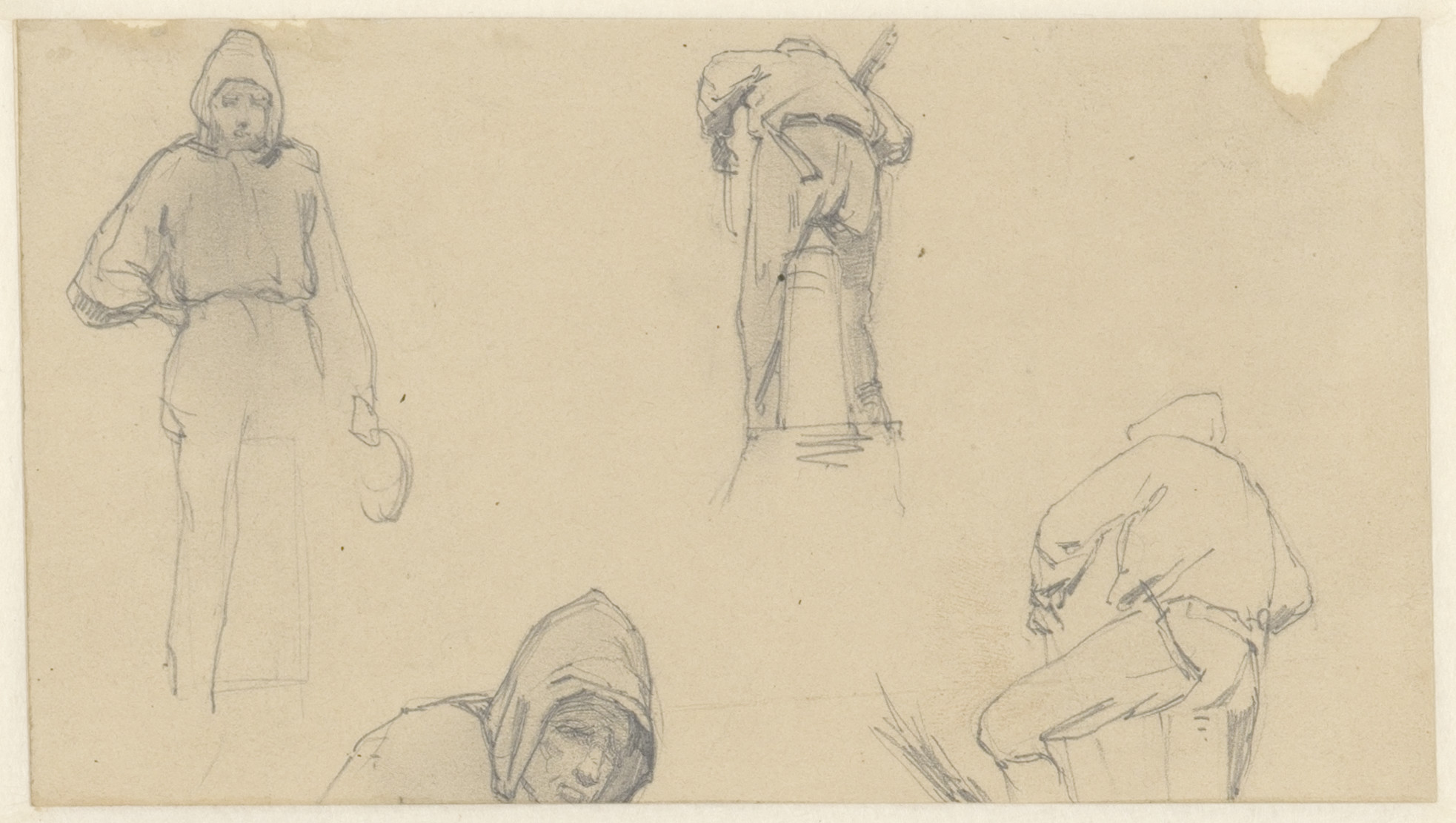 Vijf bladen, waarop studies van handen, hoofd, gevou...