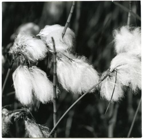 Foto in zwart-wit van bloeiend veenpluis door J.D. d...