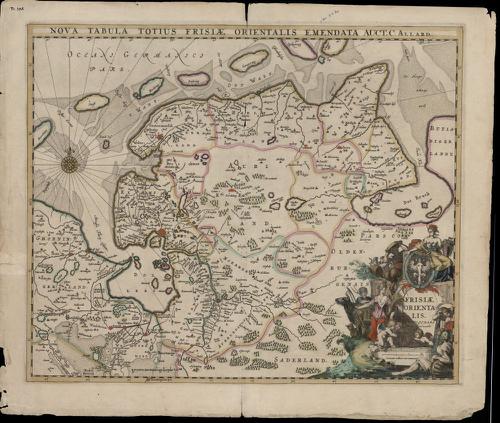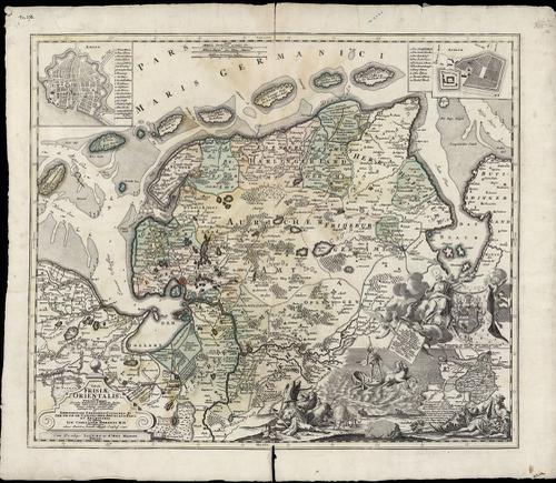 Landkaart met kleur van Oost-Friesland door Carel Al...