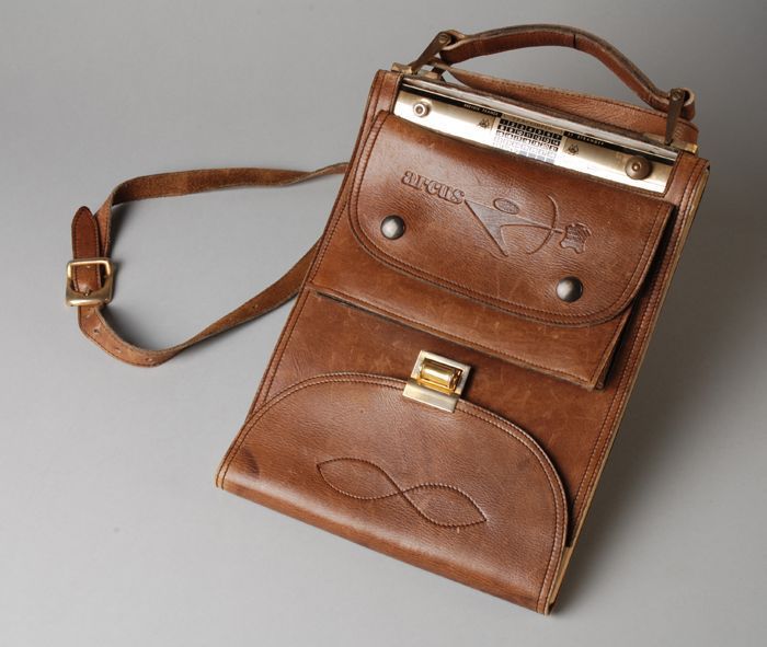 Bruine leren schoudertas met schrijfblok