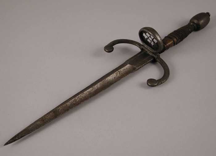 Linkerhanddolk met houten gevest, messing omvlechting