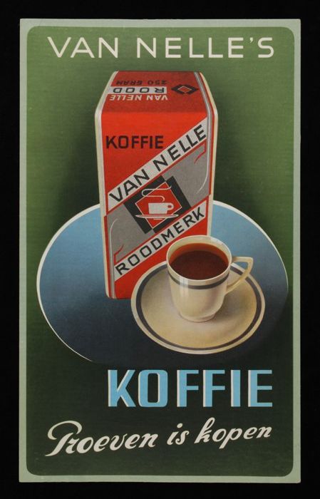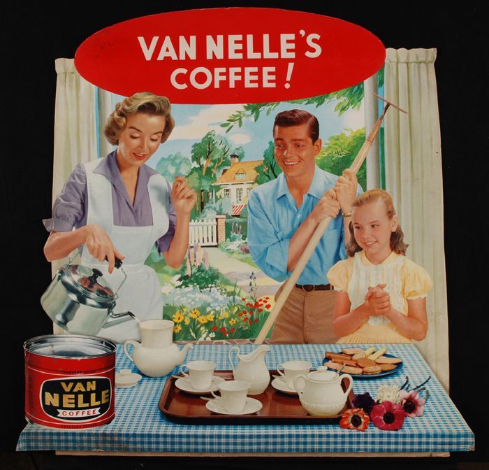 Engels reclamebord "Van Nelle's COFFEE!" moeder zet ...