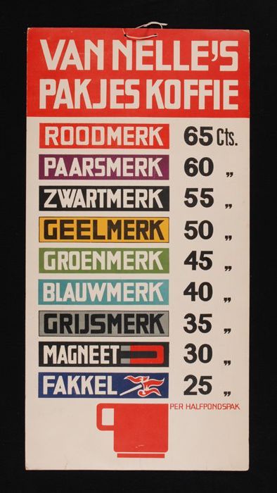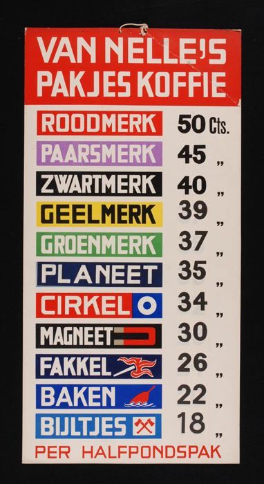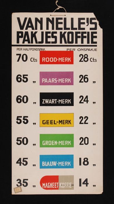 Prijslijst Van Nelle's "PAKJES KOFFIE" met onder mee...