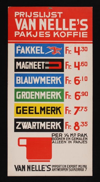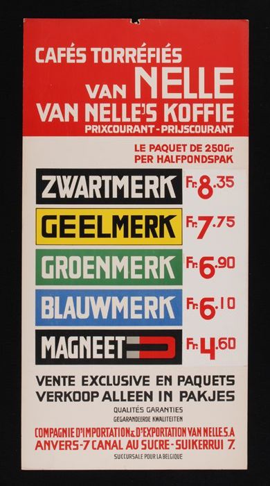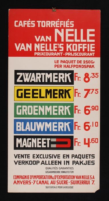 Belgische prijslijst Van Nelle's koffie, tweetalig m...