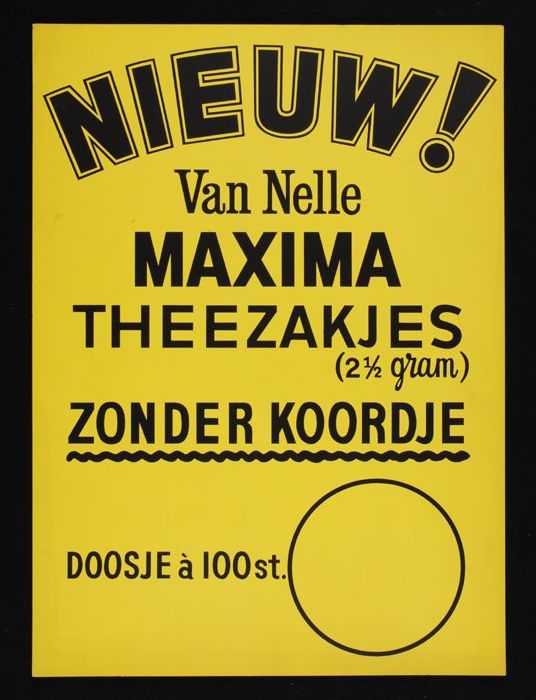 Twee reclameborden Van Nelle's "MAXIMA" theezakjes