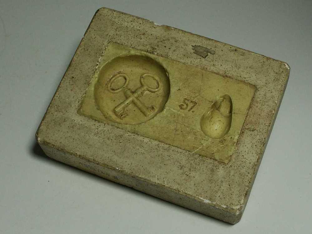 Marsepeinvorm van gips en zwavel met afbeelding van ...