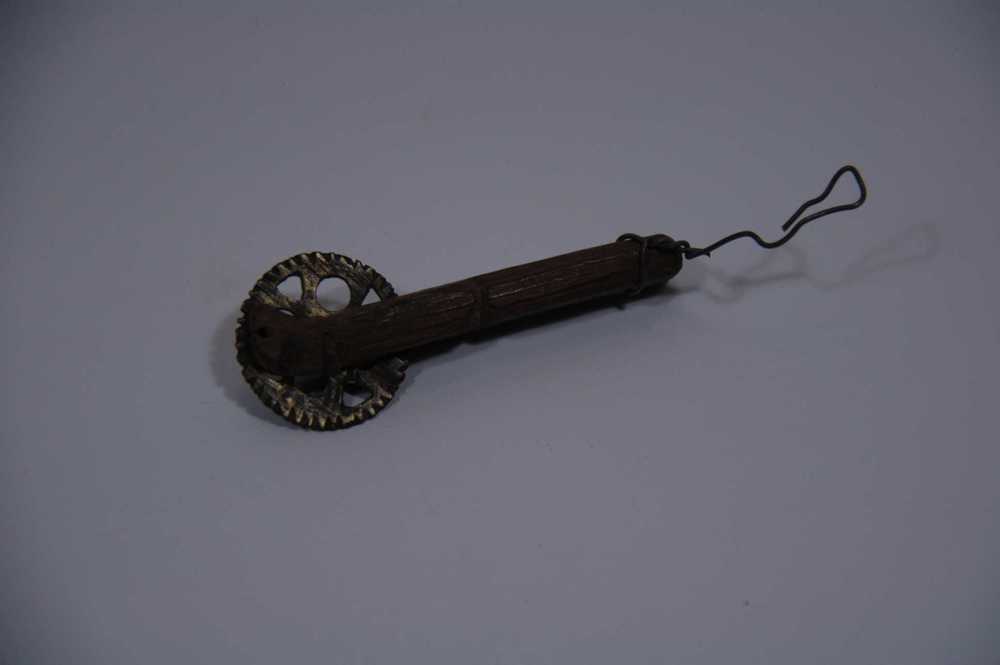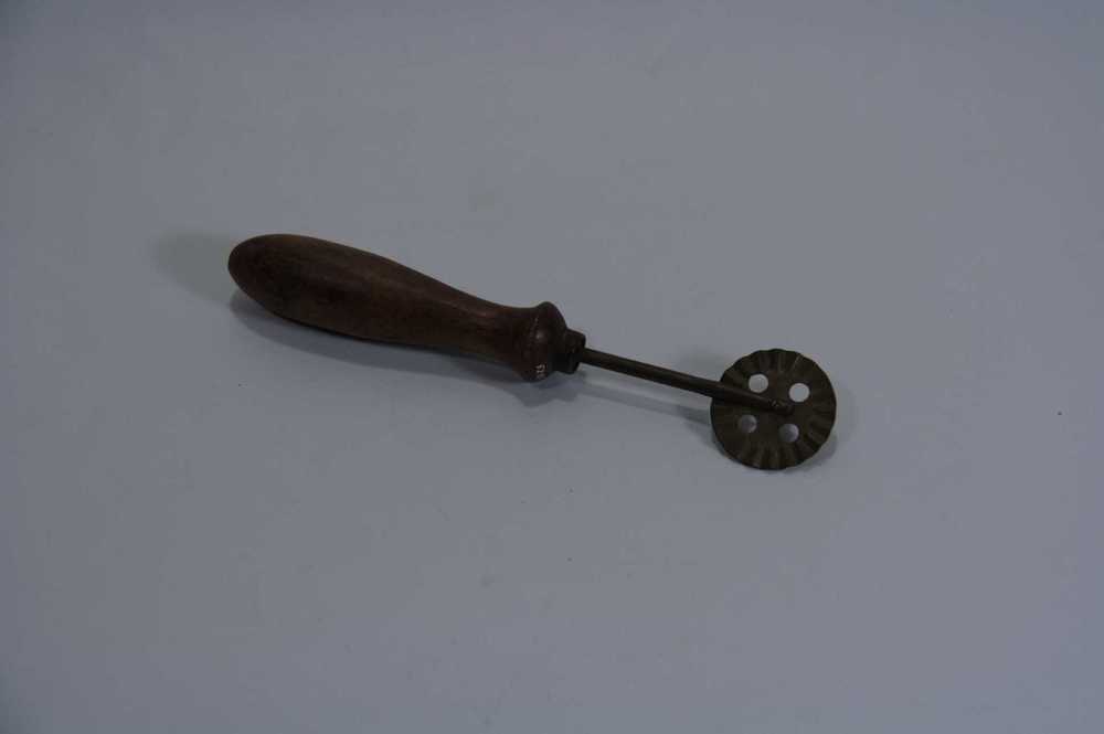 Korstrader van metaal met houten handvat
