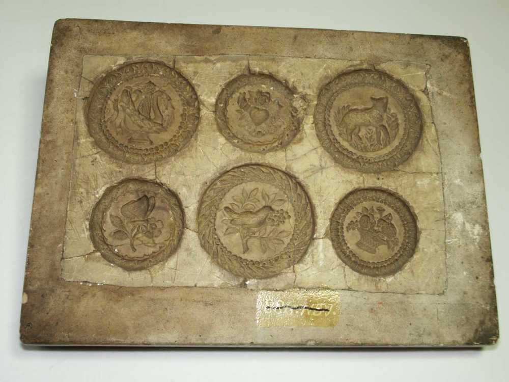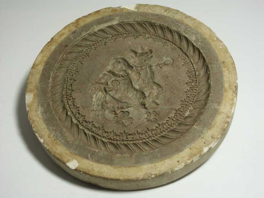 Marsepeinvorm van chamotteklei met afbeelding van vo...