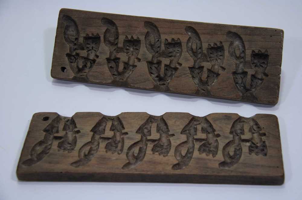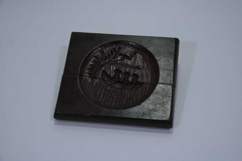 Marsepeinvorm van hout met afbeelding van 3 mensen i...