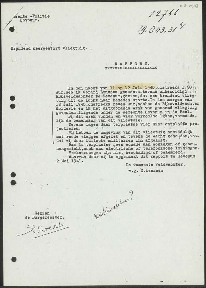 Rapport d.d. 02-05-1941 van de Gemeente-Politie Seve...