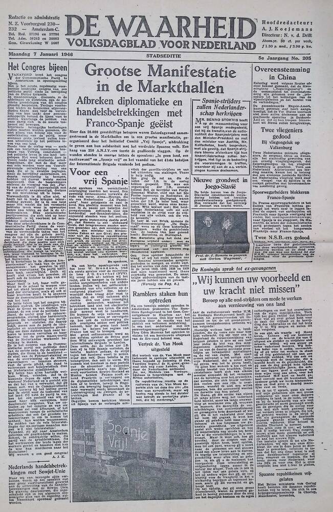 De Waarheid, 7 januari 1946, 5e jaargang no 205