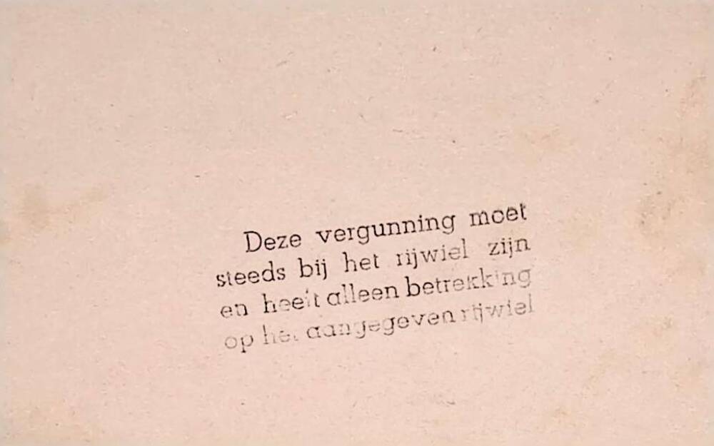 Rijwielvergunning op naam van T. Bouwmans