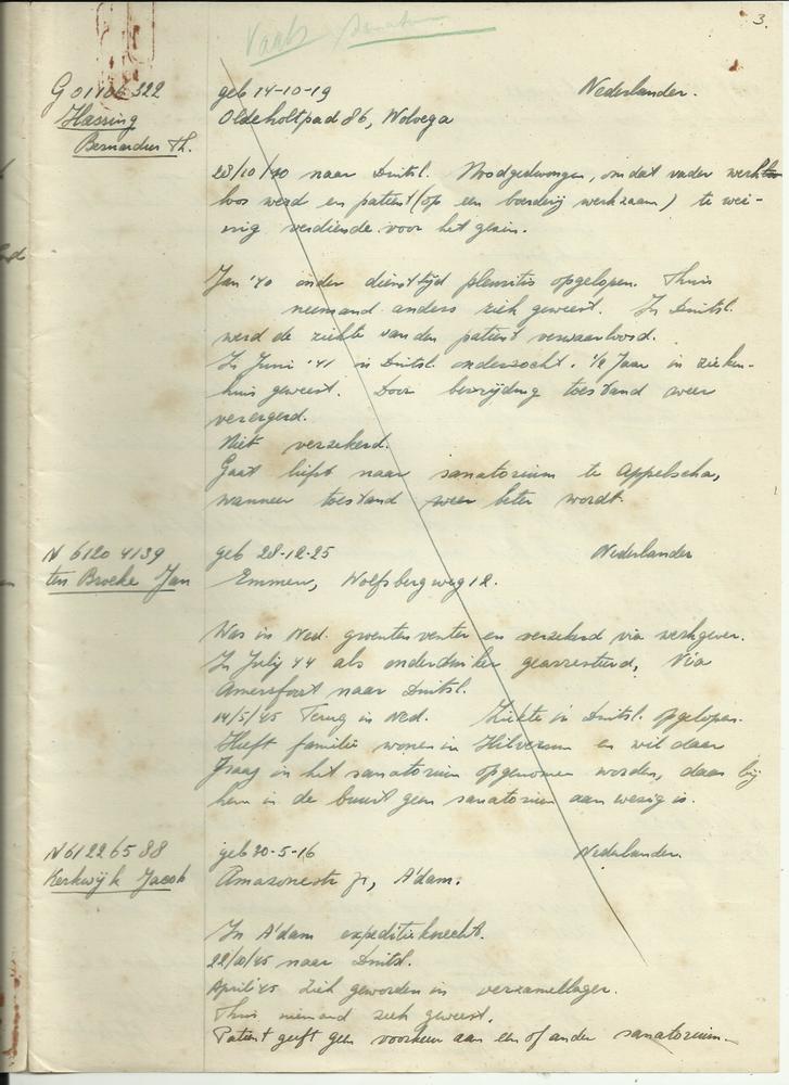 Handgeschreven inventarisatie evacuees te Vaals