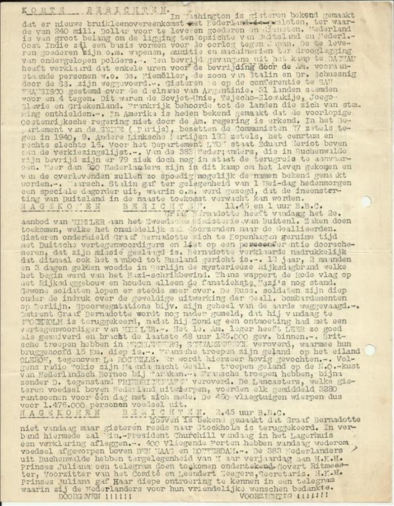 V N Nieuws, Speciaal bulletin, No. 101, 11 April 1945