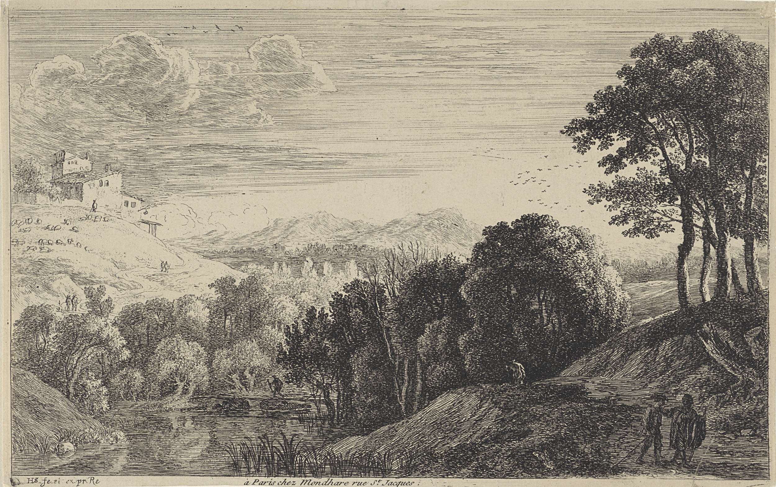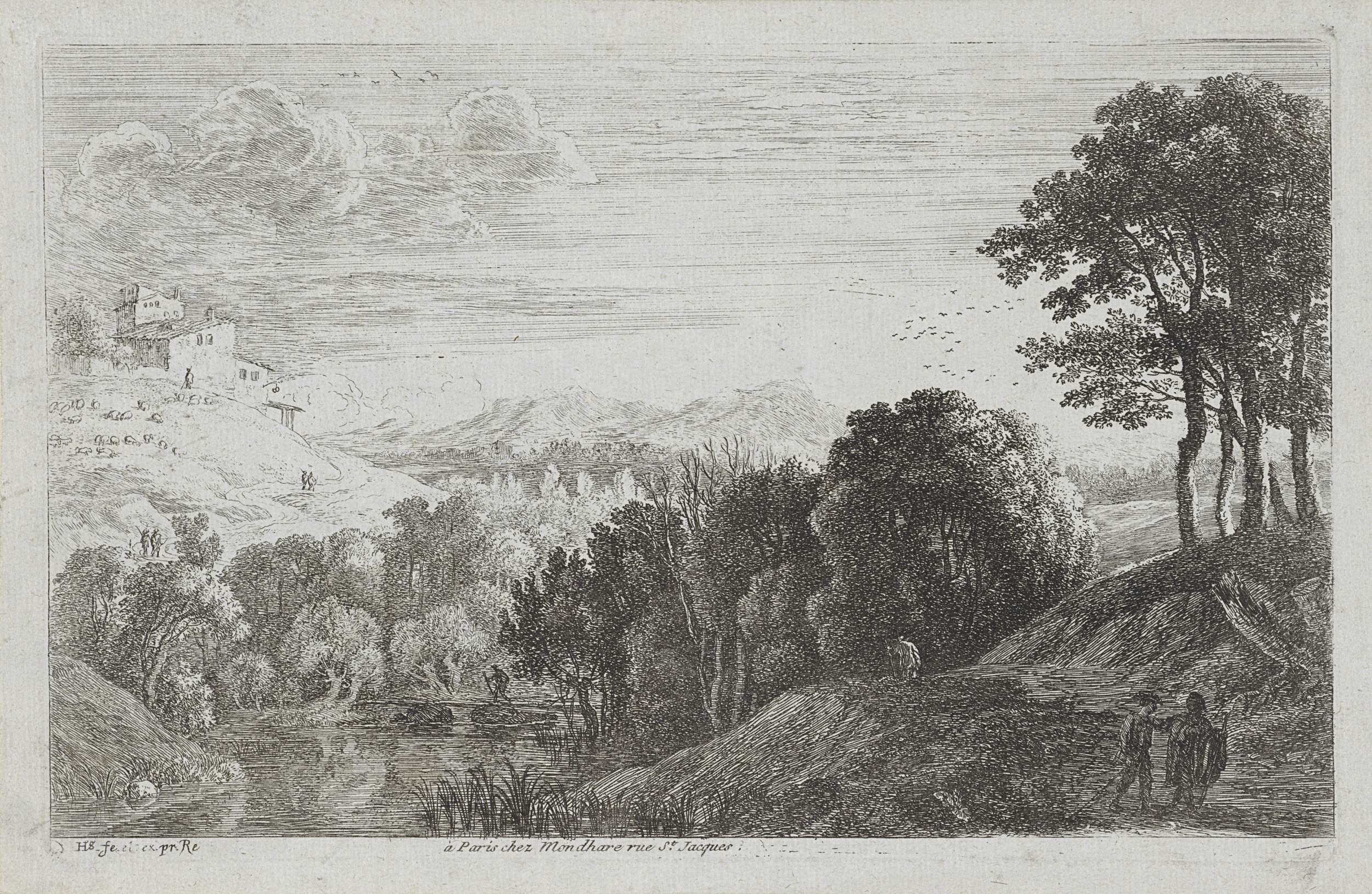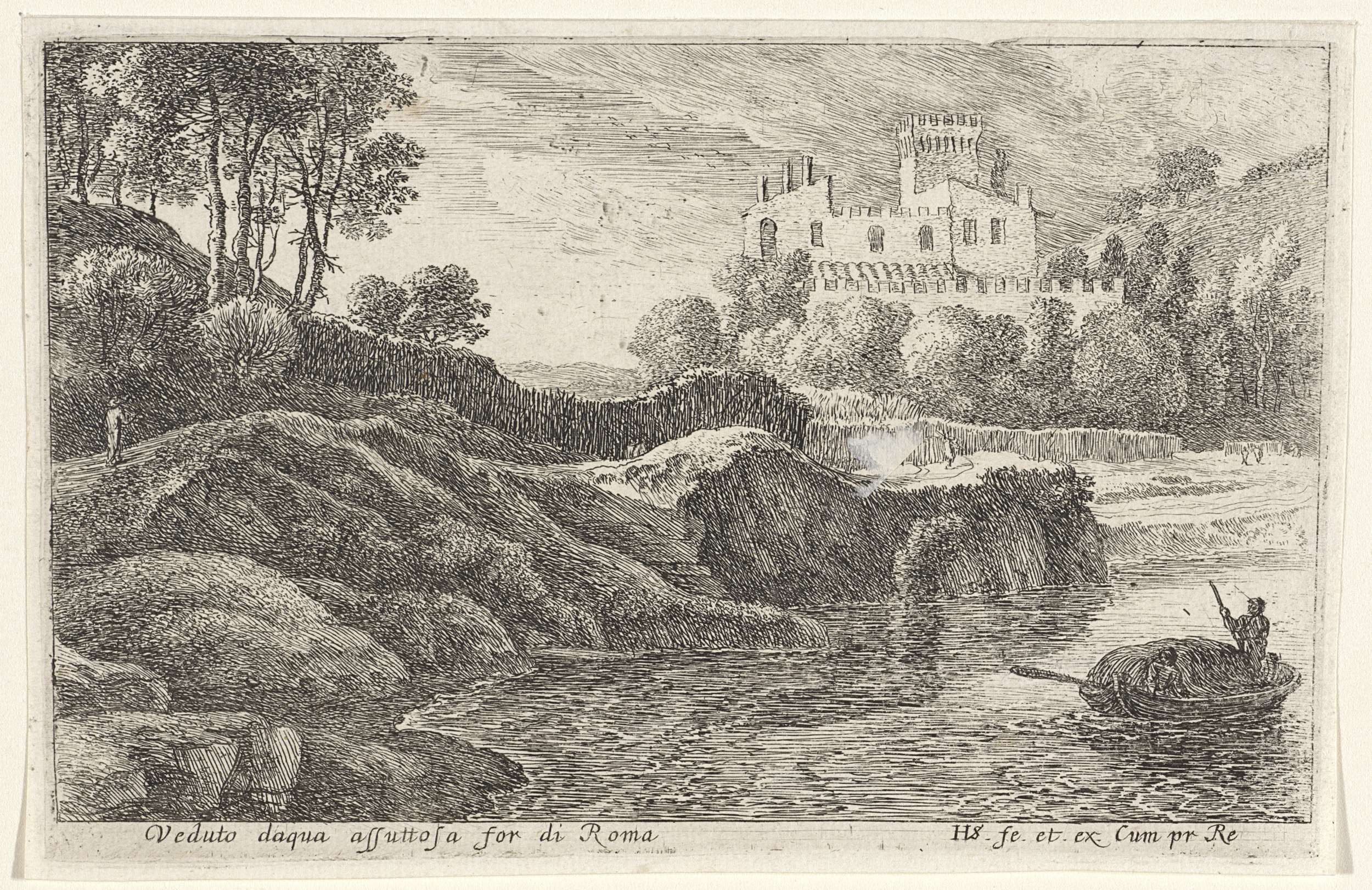 Landschap met figuren aan de waterkant
