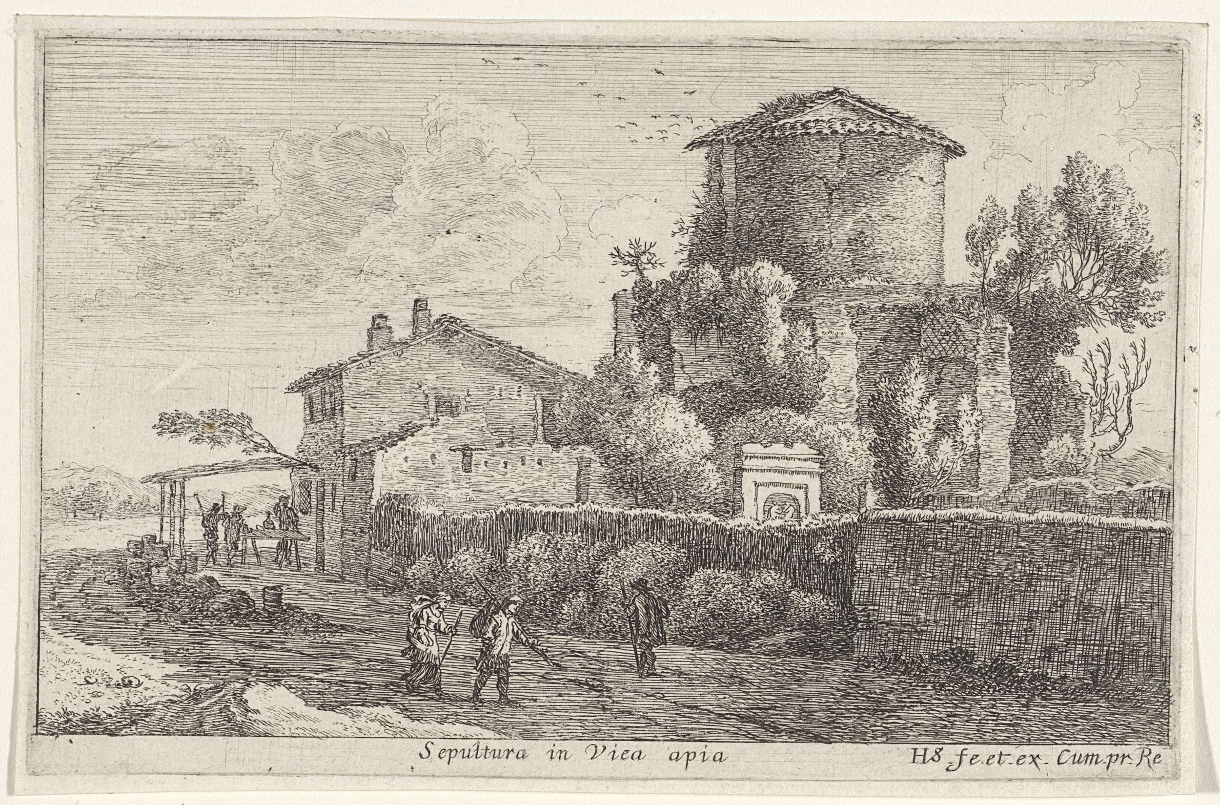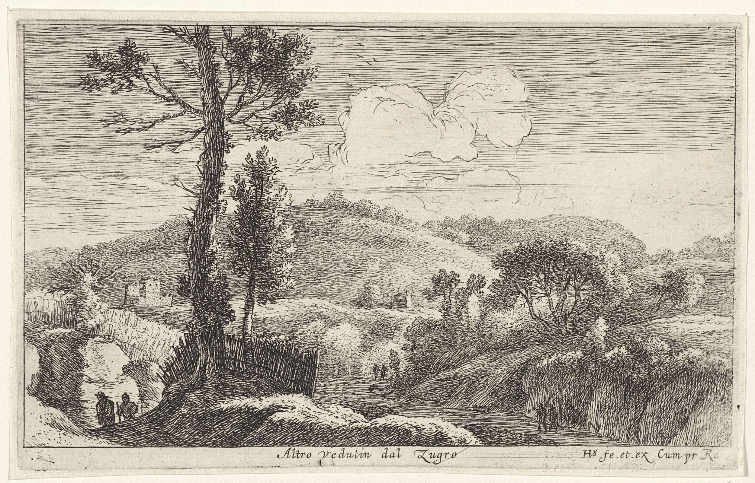 Landschap met drie wandelaars