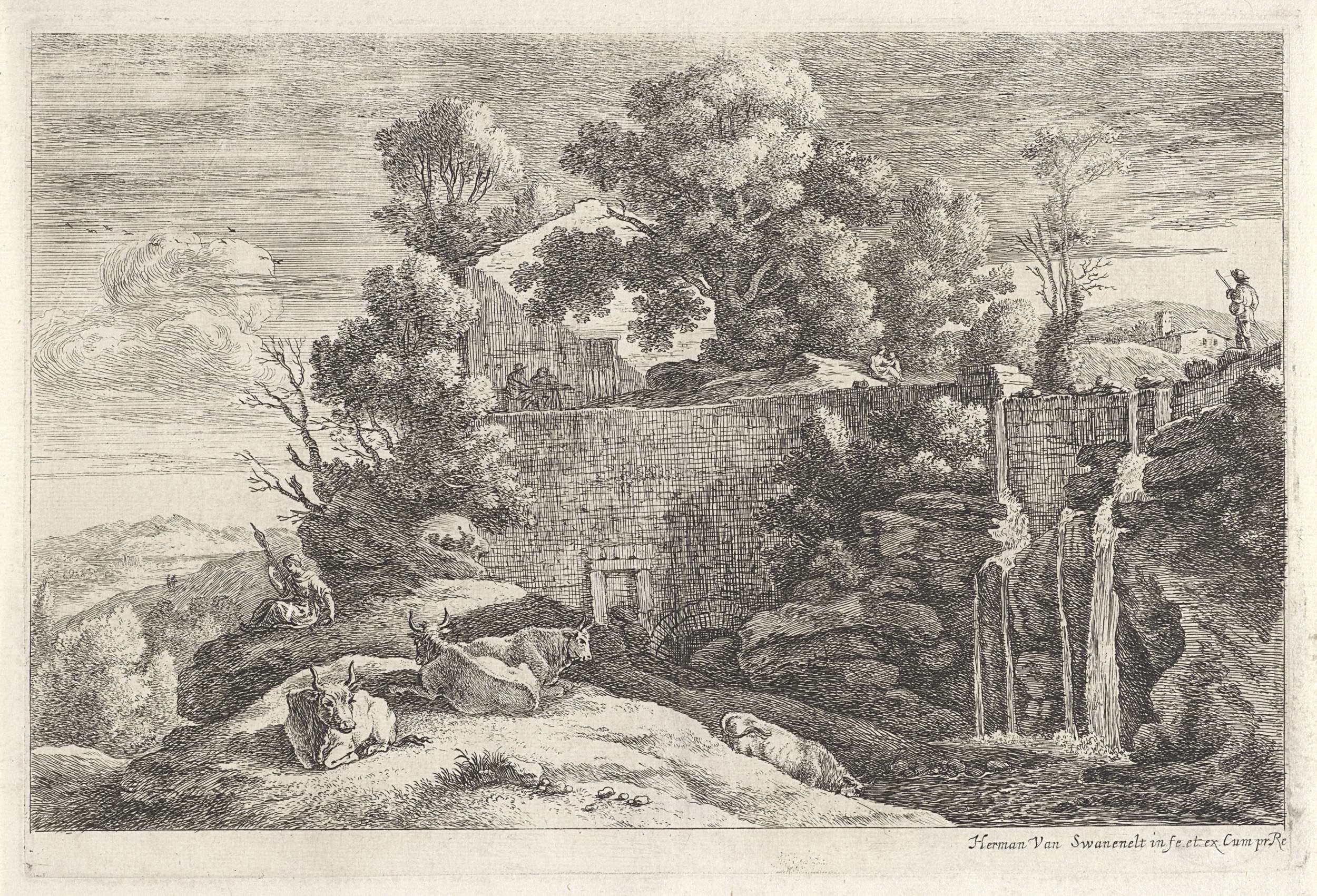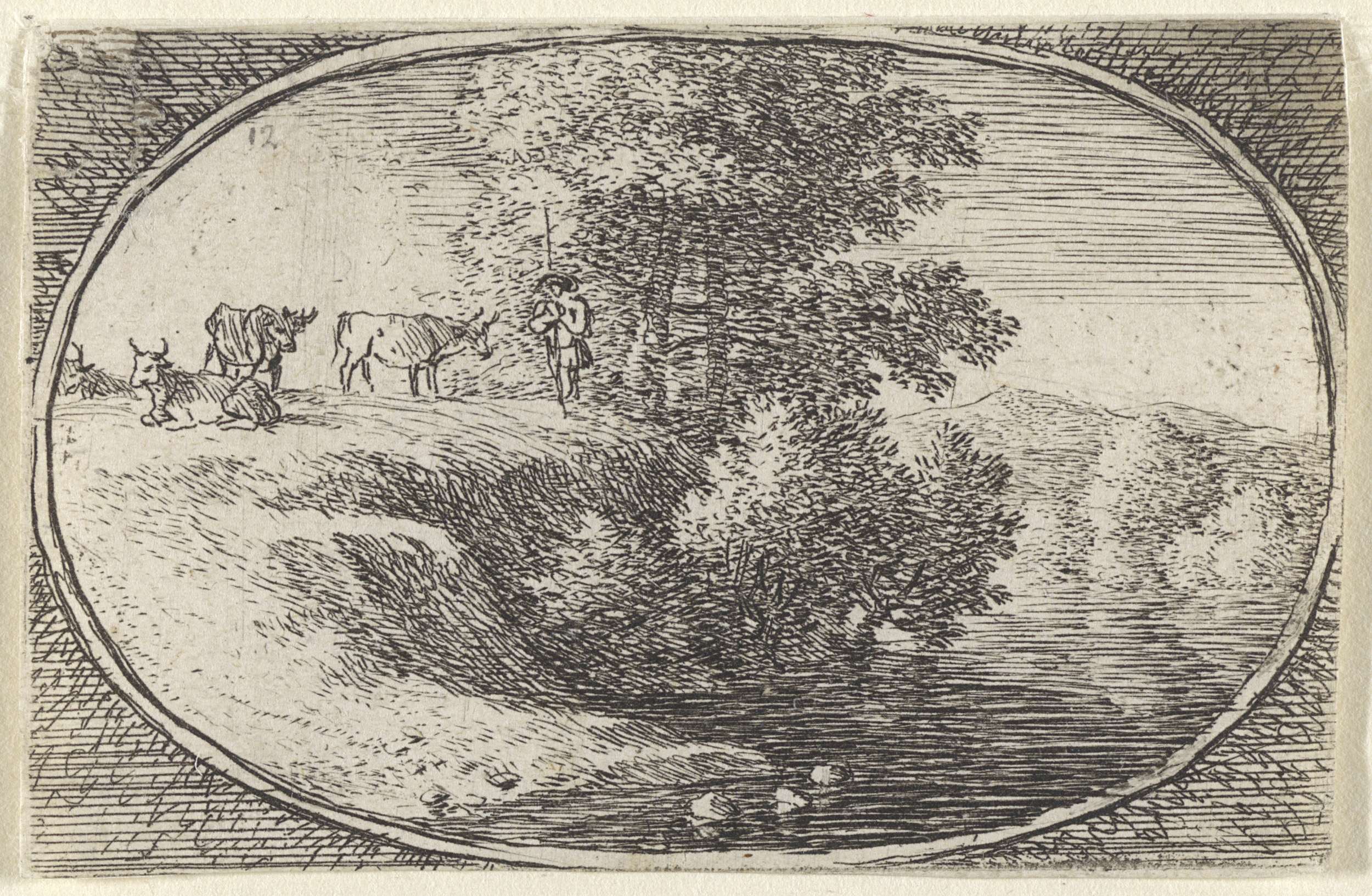 Landschap met koeien en een spinster
