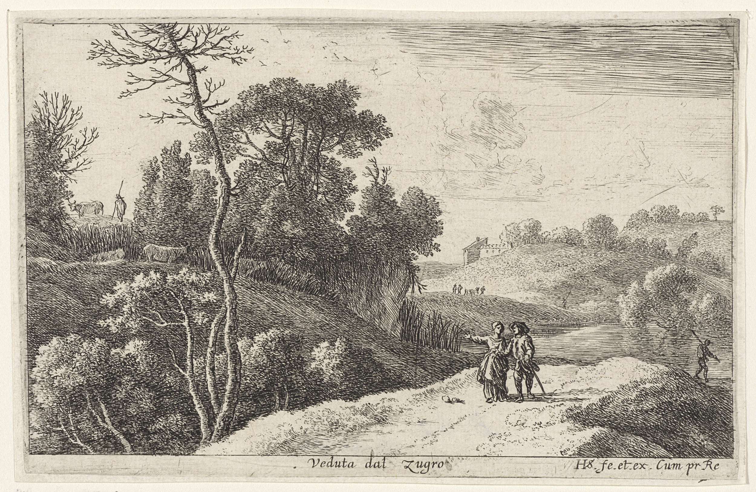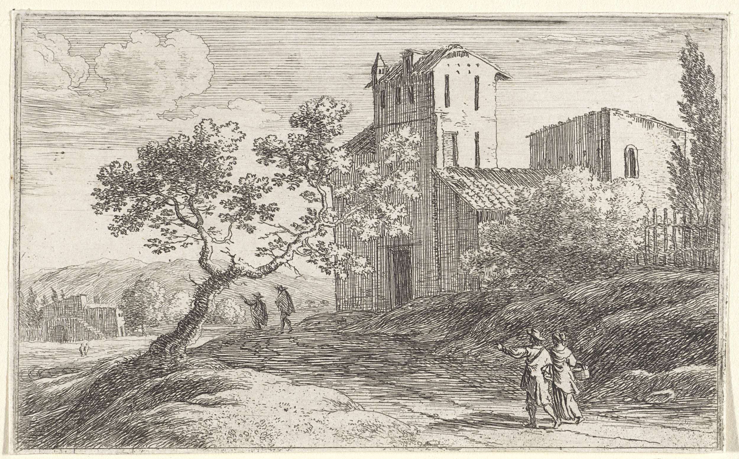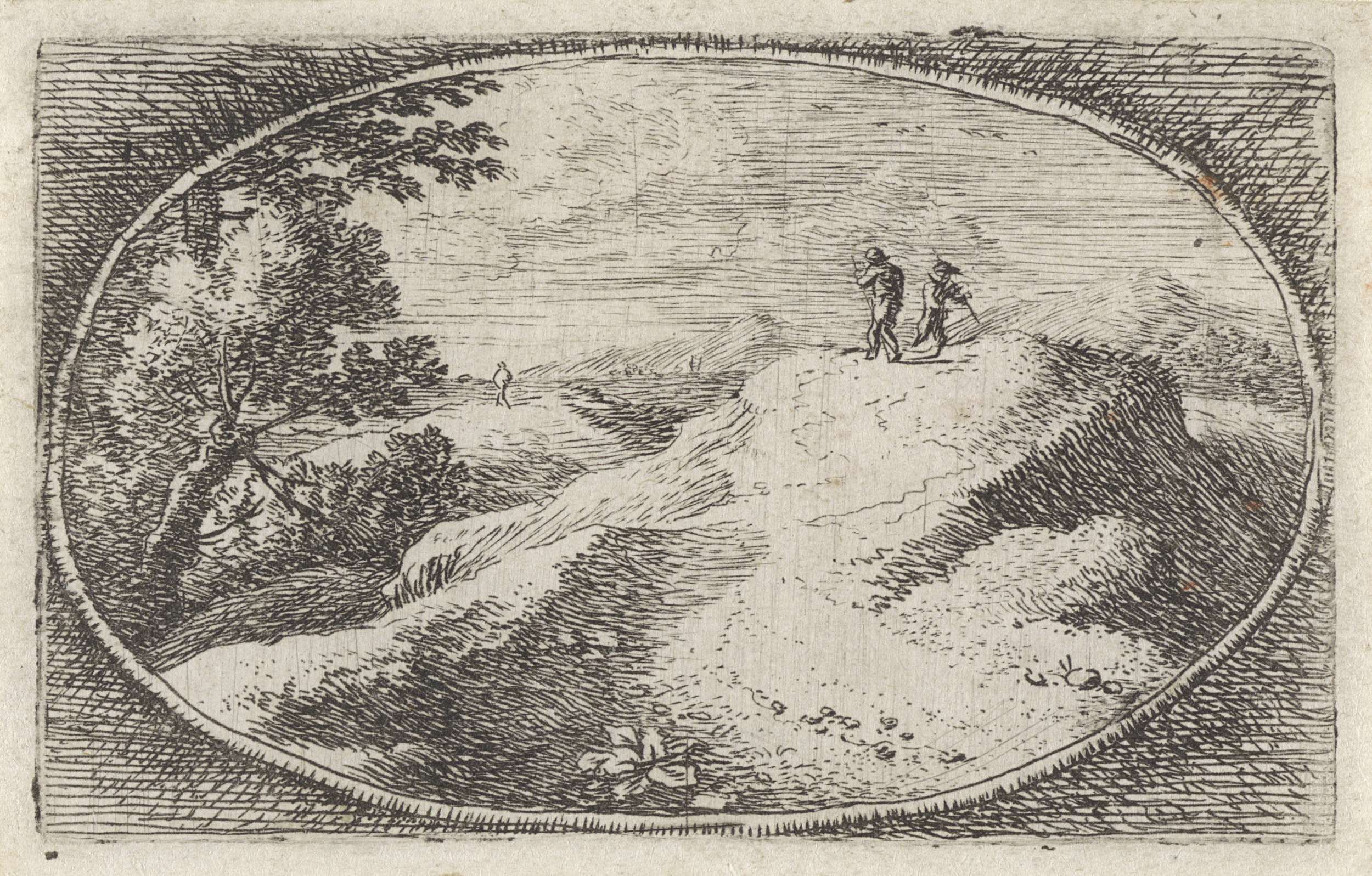 Landschap met figuren op een slingerend pad