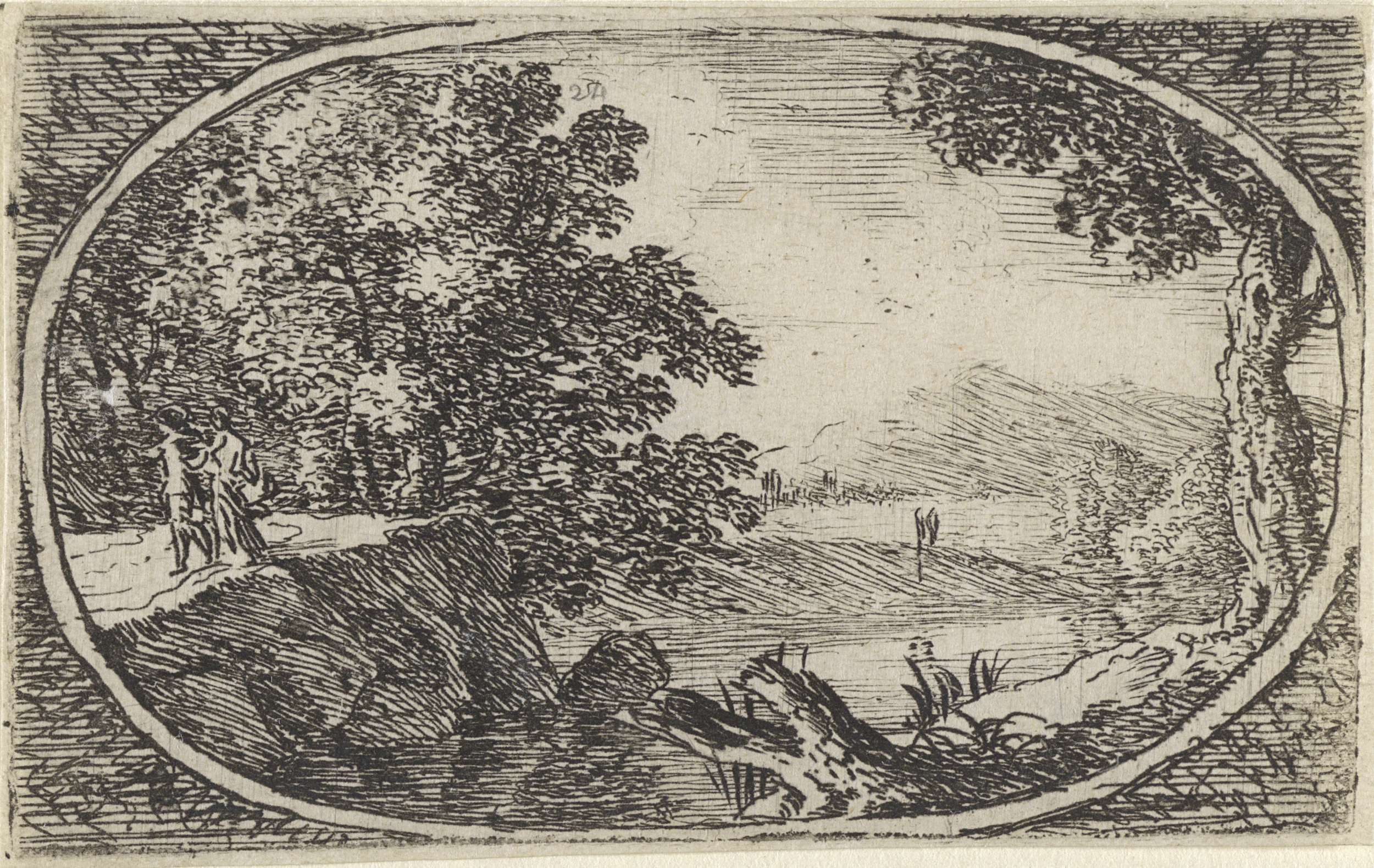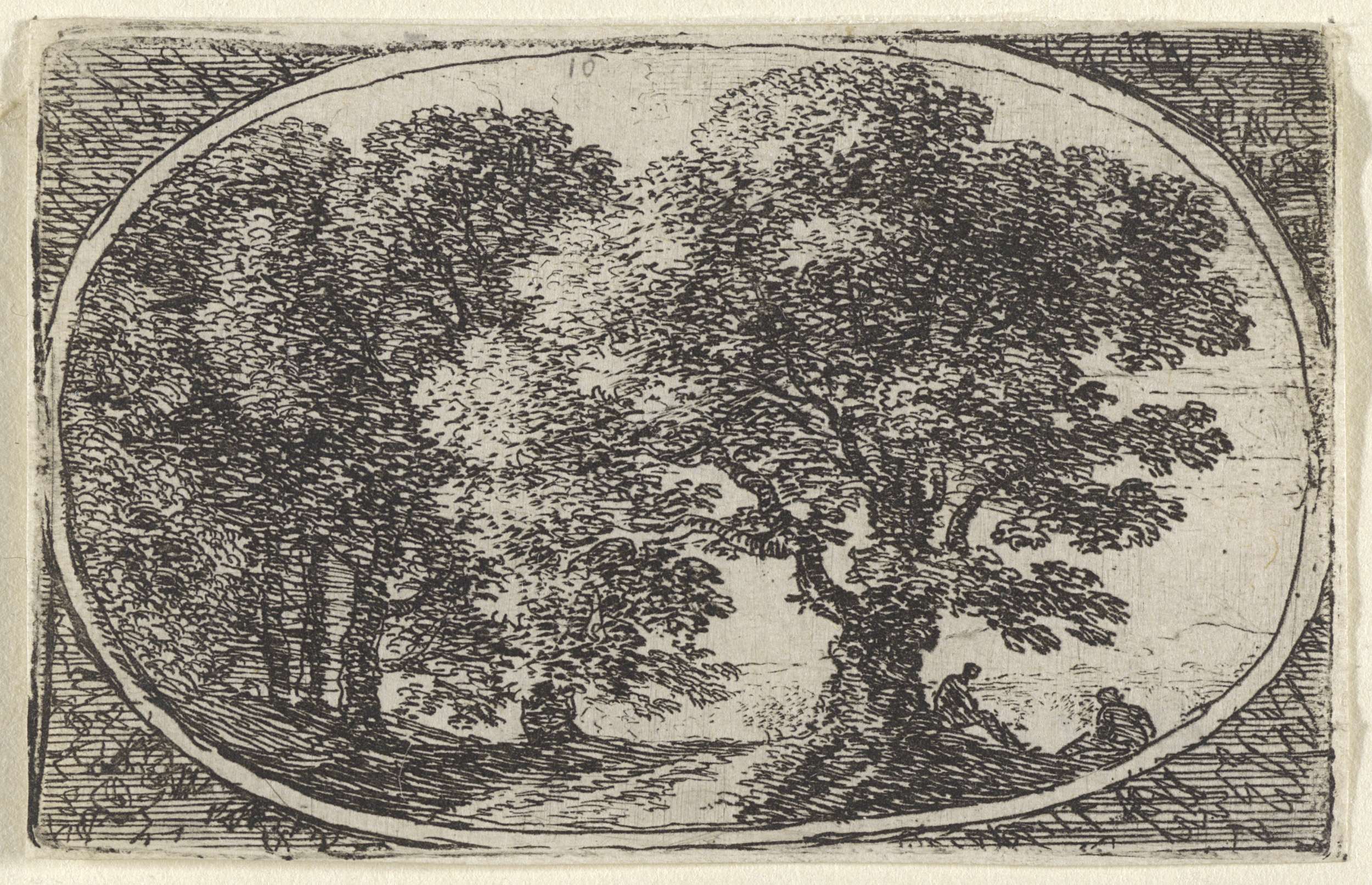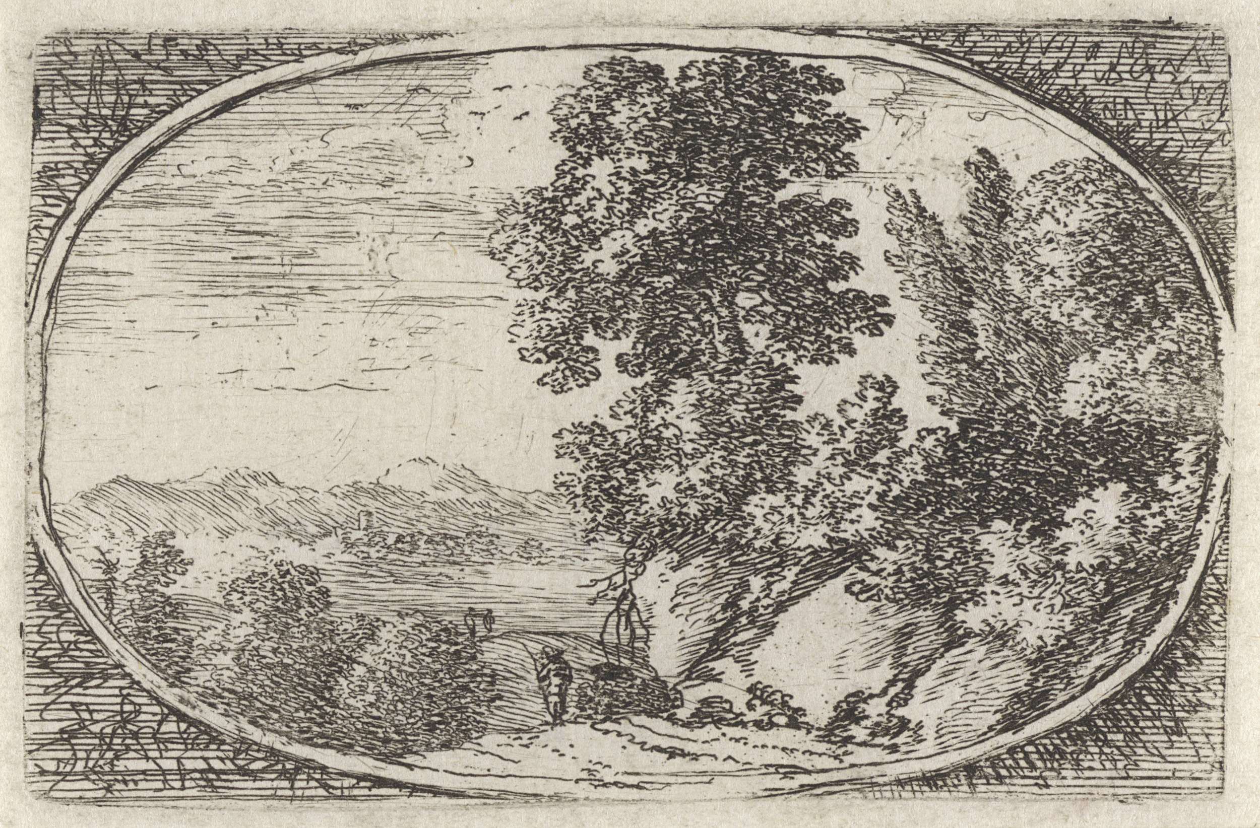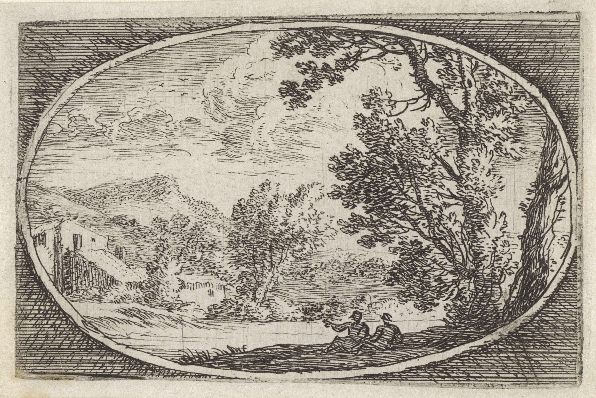 Landschap met twee figuren onder een boom