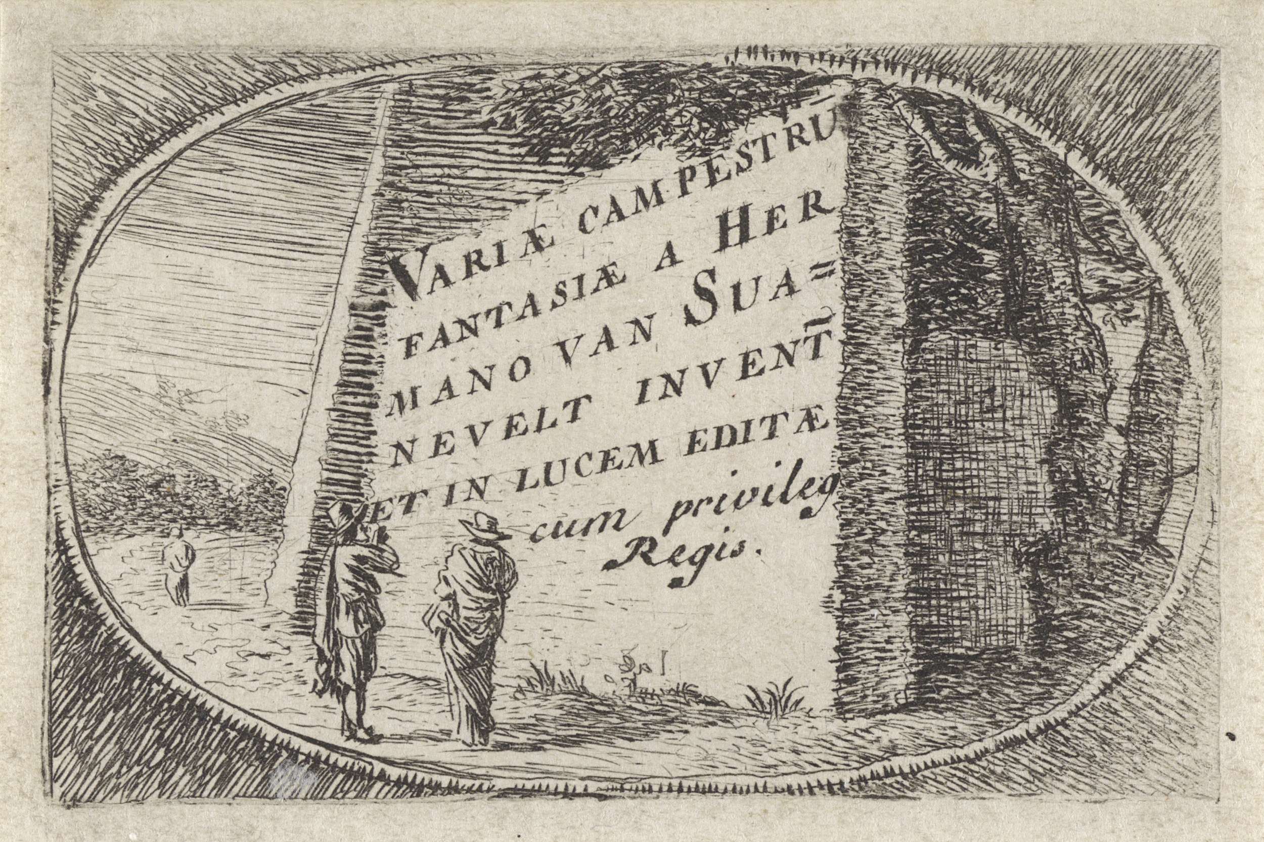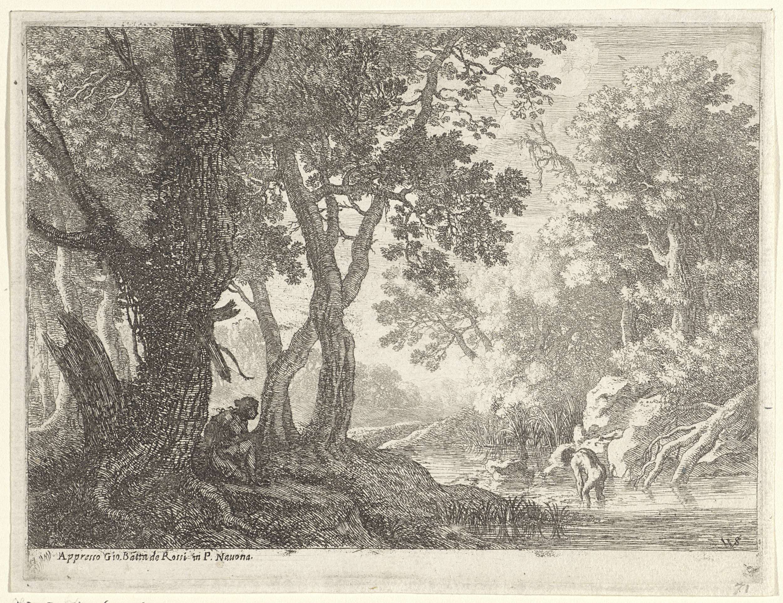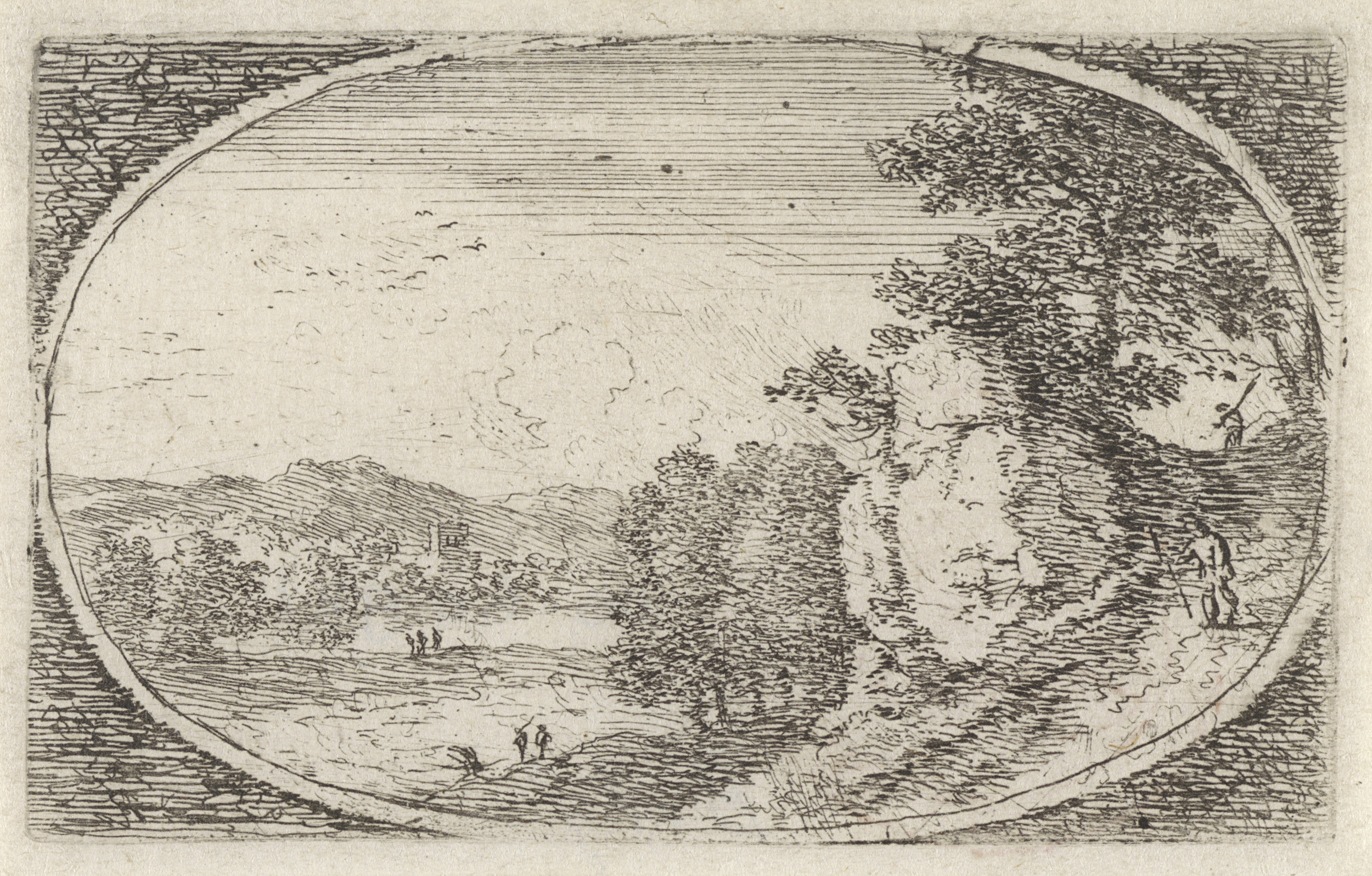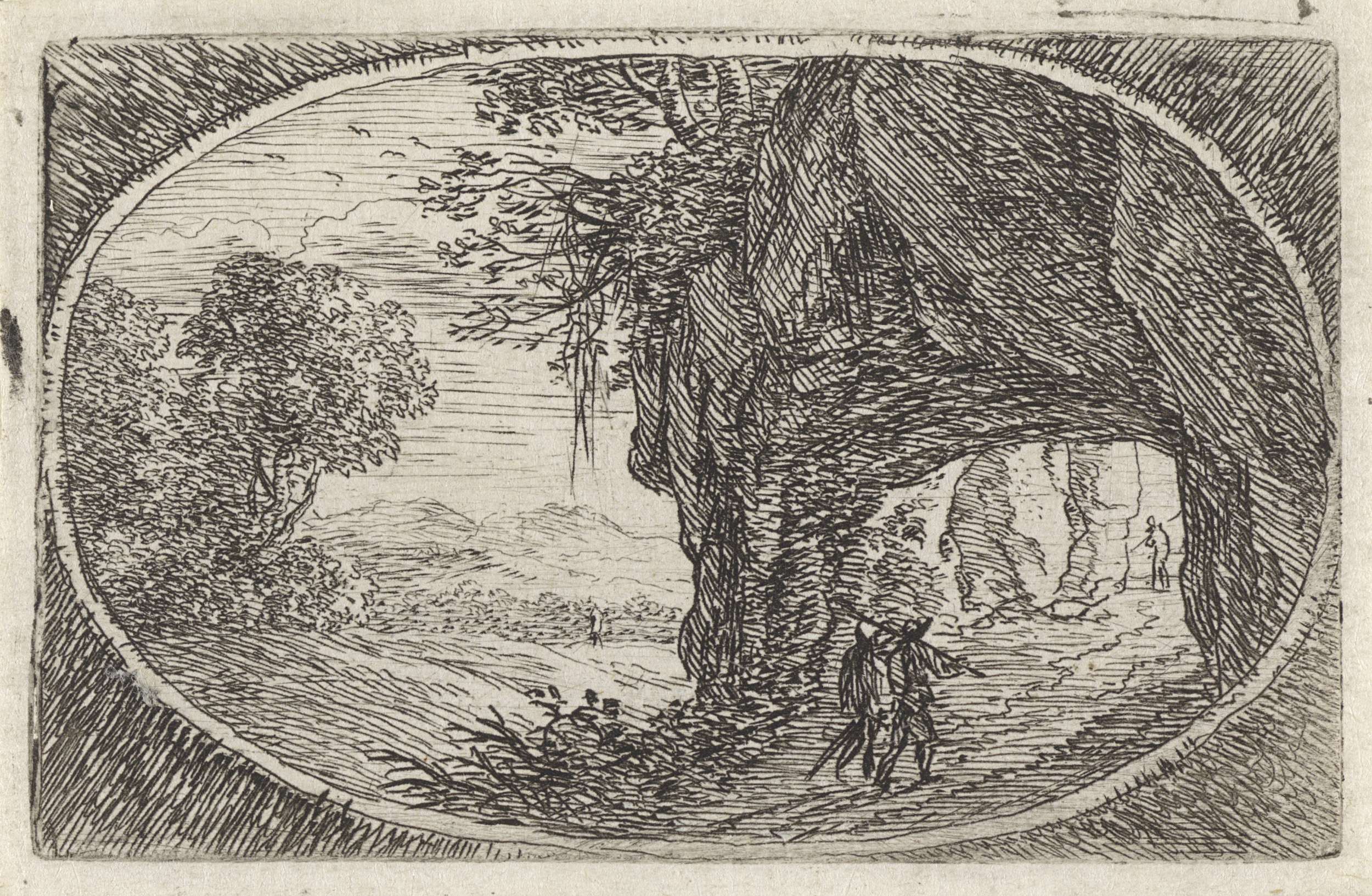 Landschap met twee figuren onder een boom