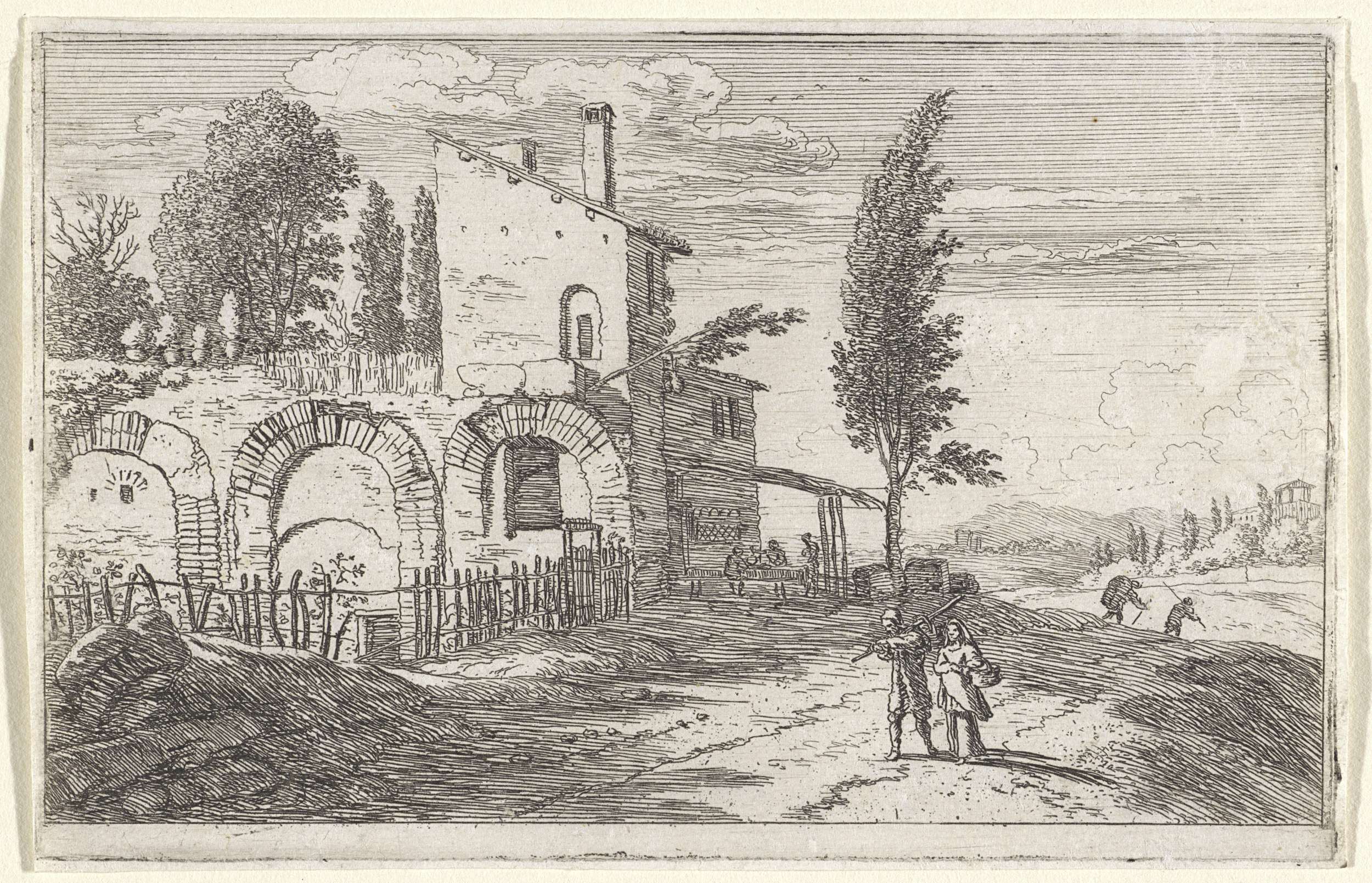 Twee figuren bij een landweg
