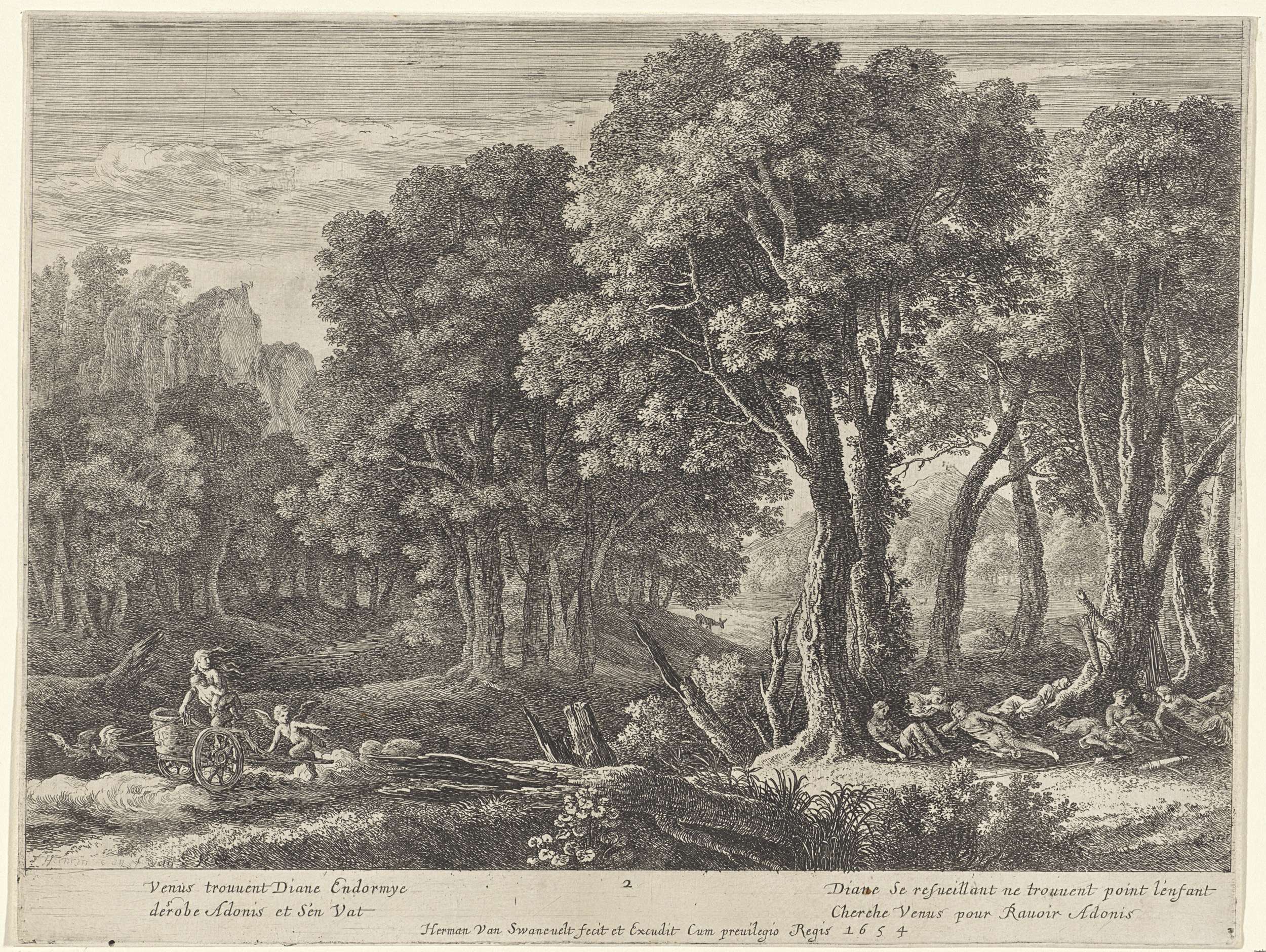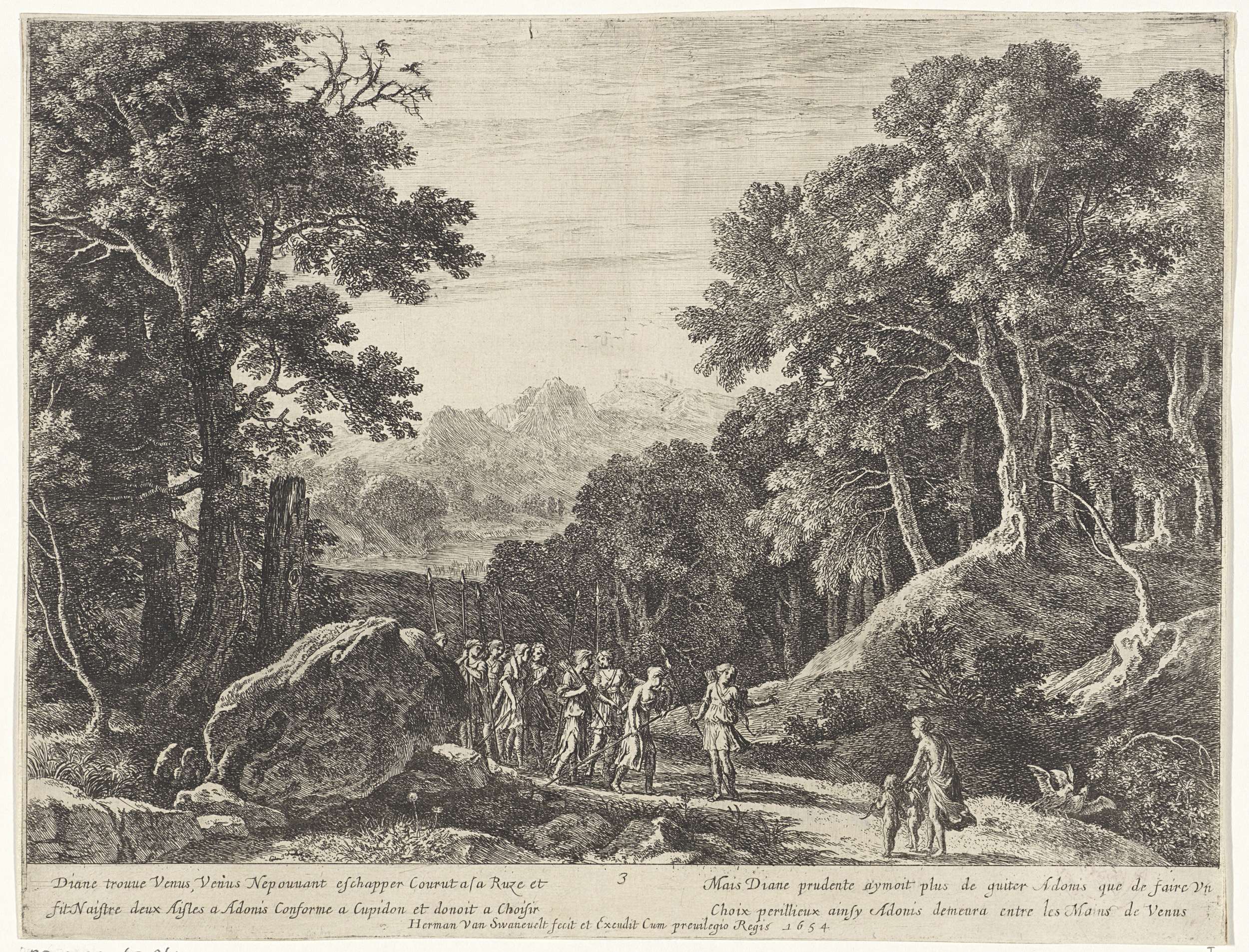Venus biedt Diana de keuze tussen Cupido en Adonis