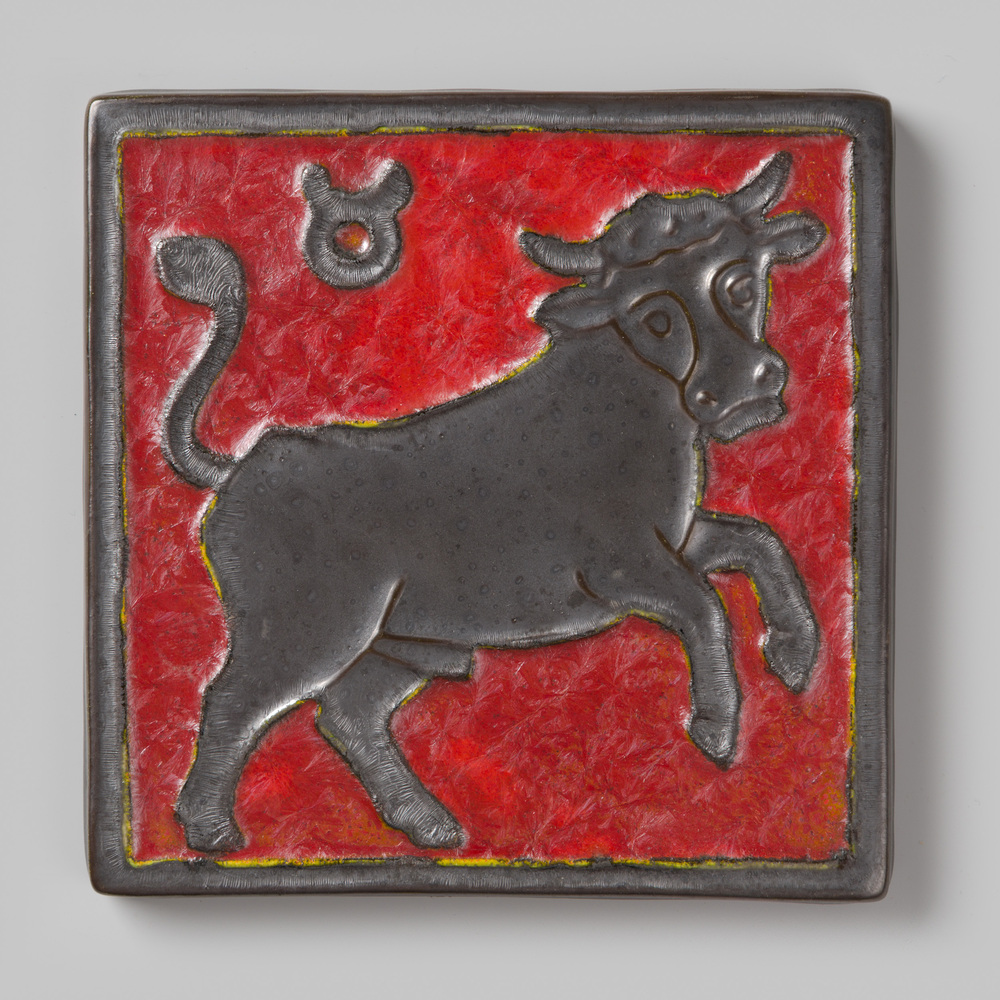 tegel van aardewerk in cloisonné-techniek, voorstell...