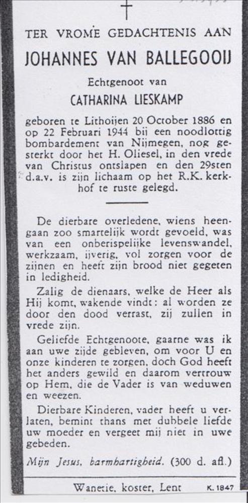 Bidprentje (kopie) Johannes van Ballegooij