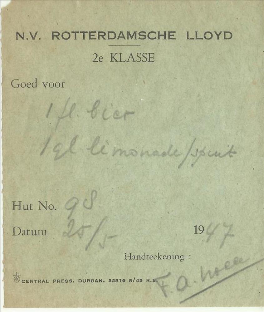 Consumptiebon N.V Rotterdamsche Lloyd
