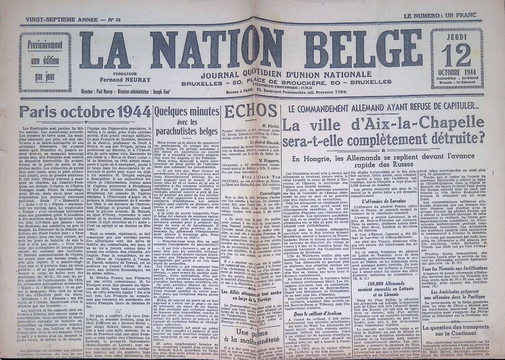 La Nation Belge - 12 oktober 1944