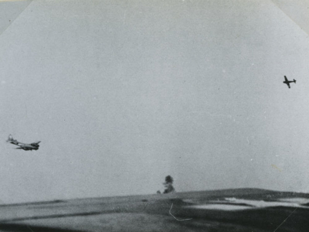 Foto van B-17 die door een Focke Wulf 190 aangevalle...