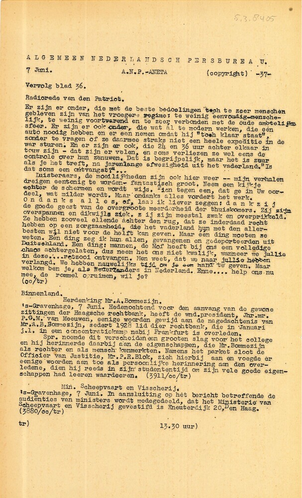 Vel: Algemeen Nederlandsch Persbureau, mededelingen,...