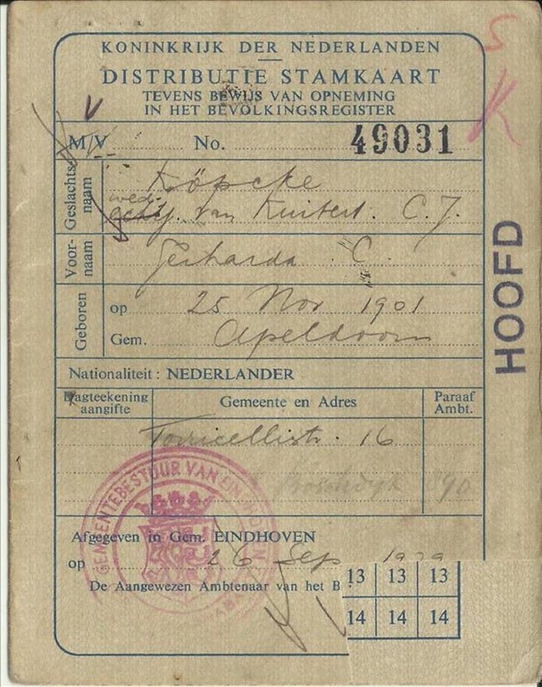 Distributiestamkaart ( tevens bewijs van opneming in...