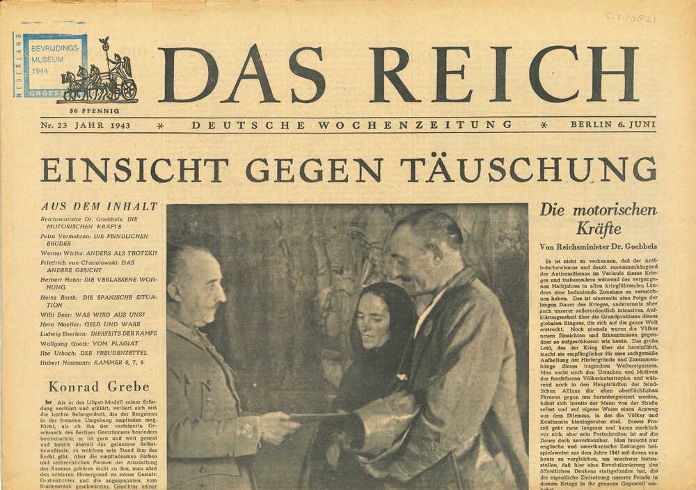 Das Reich, Deutsche Wochenzeitung, Jahr 1943, nr 23,...