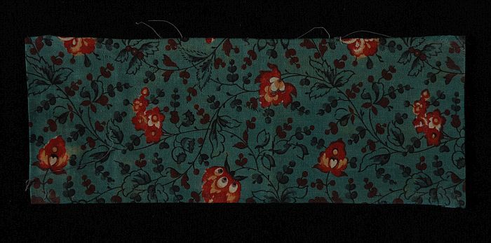 Textielfragment van bedrukt gebloemd katoen op blauw...