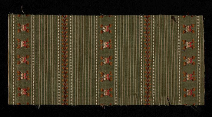 Textielfragment van groen zijde met ingeweven strepe...