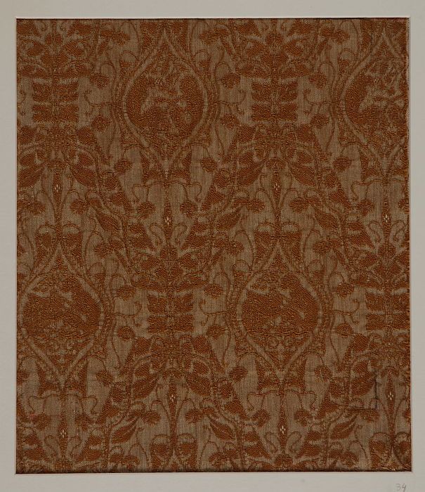 Textielfragment van ingeweven jacquard in donkerbrui...