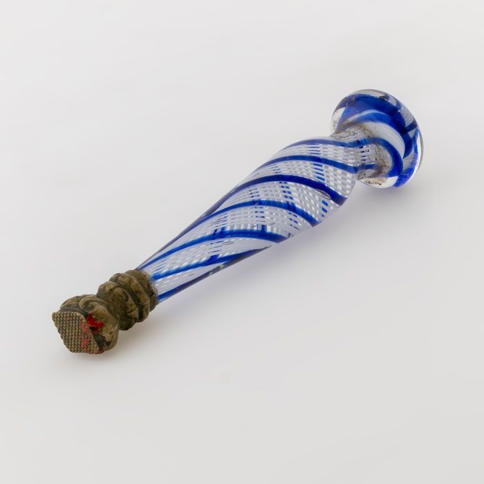 Stempel met geschaakt patroon aan Venetiaans glazen ...