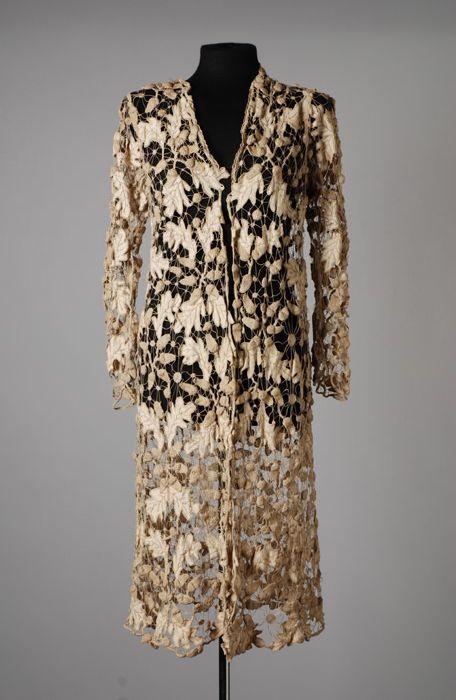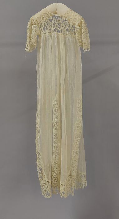 Ecrukleurig jurkje met hoge taille, in Empire stijl