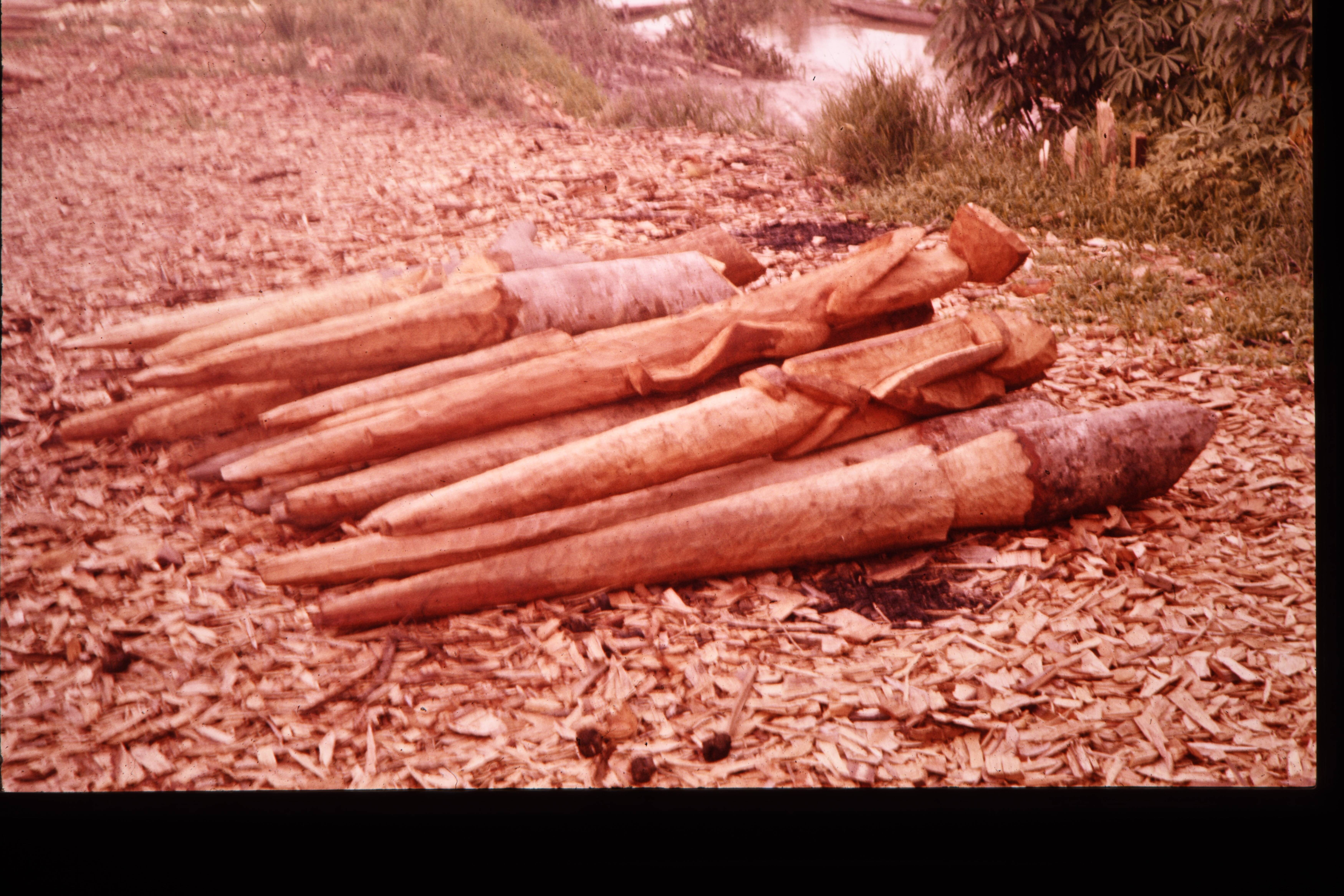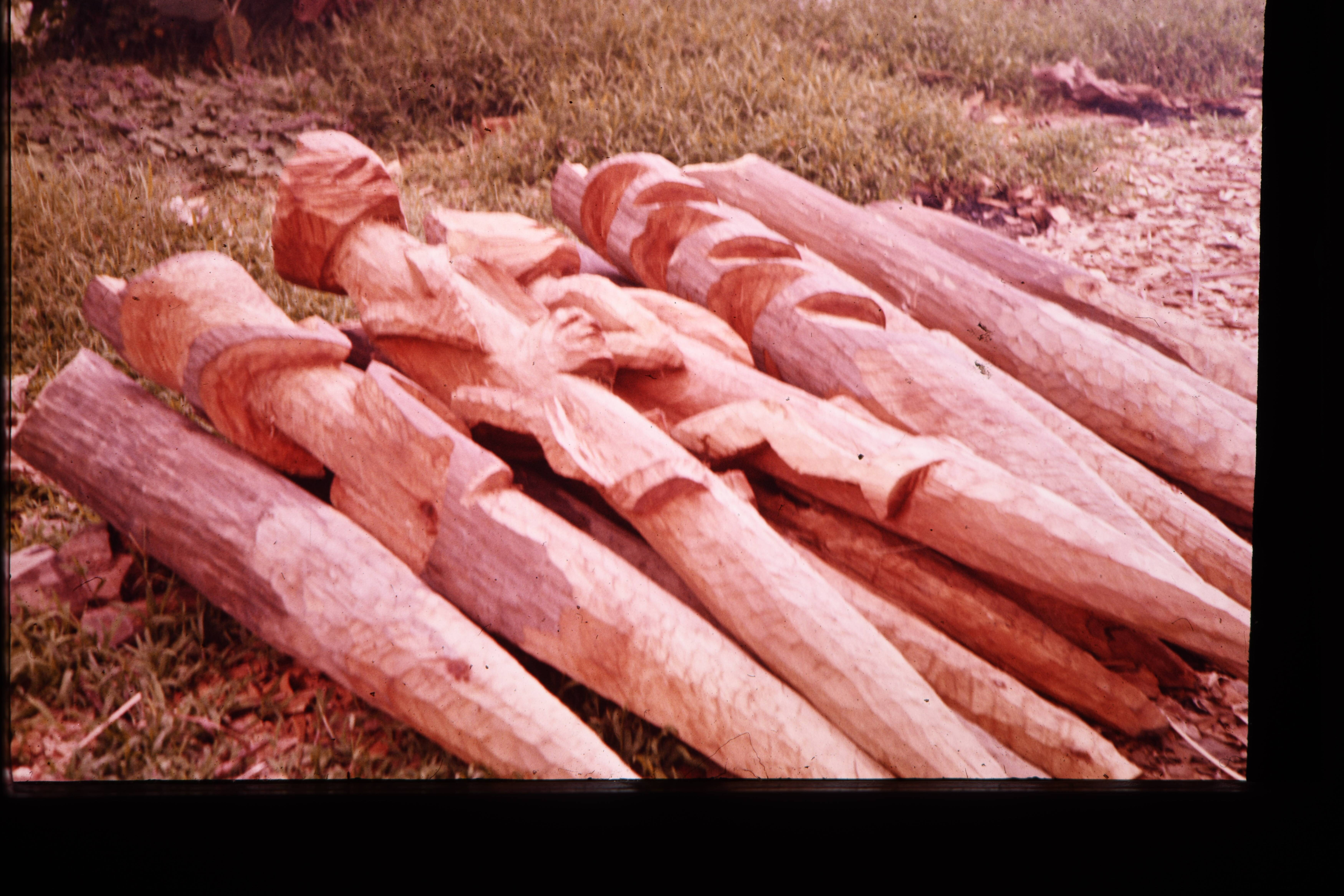 Stapel huispalen voor jö Amman waarvan voorste 2 bew...