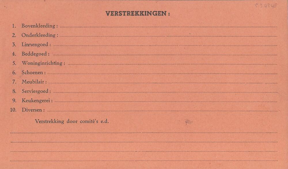 Formulier Verstrekkingen oranje, 1e exemplaar