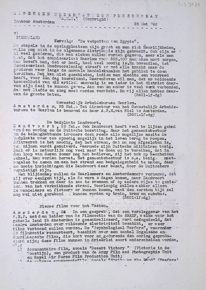 Algemeen Nederlandsch Persbureau, mededelingen, kant...