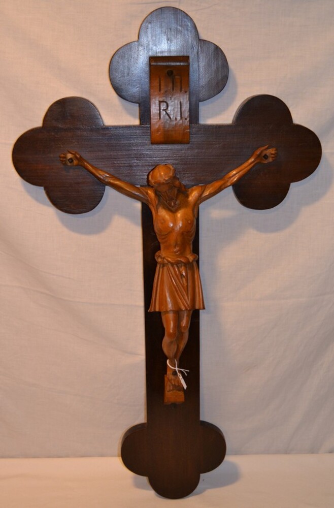 Crucifix van hout met handgesneden corpus uit 1930 -...