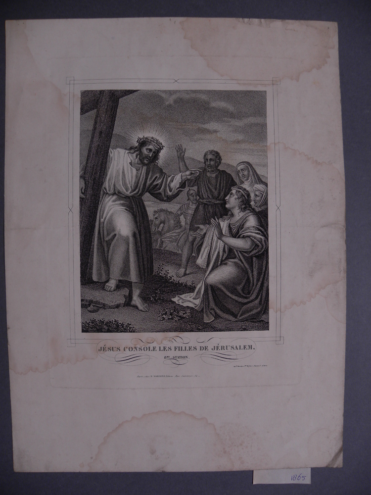 Litho voorstellende achtste statie uit de kruisiging...